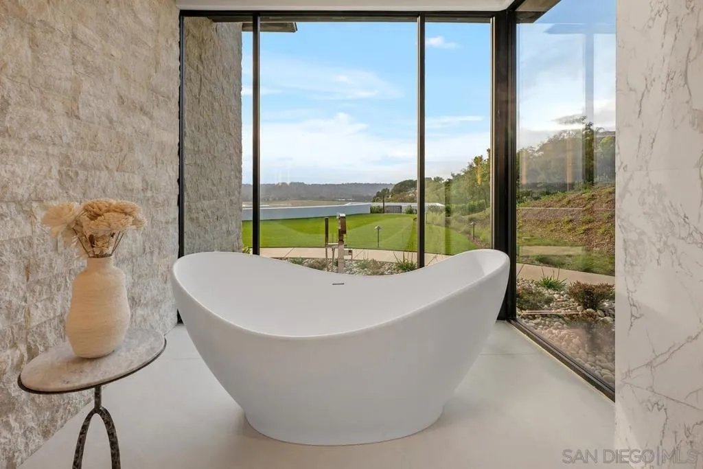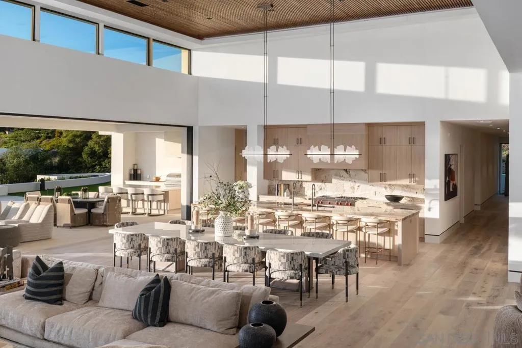 Unparalleled luxury awaits at 5968 Ladys Secret Ct! Nestled within a gated and coveted enclave with Sweeping VIEWS/ Sunsets from the valley to the Coast and Mountains beyond. Selling Fully Furnished w/ Art and spanning over 12,000 sq ft—with not a single step—this Architectural Masterpiece combines breathtaking scale with meticulous attention to detail. A dramatic pivot door welcomes you into a serene open-air courtyard, setting the tone for a residence that offers equal parts serenity and statement. The sense of arrival is stunning & everyone will appreciate the 8-Car Garage. Master builder Kyle Doan Construction, all furniture/ design work by Very Talented Kelly Doan & architect Mark Radford—One of San Diego County’s most significant offerings Inside, rare natural Patagonia stone—sourced from a newly discovered mine—graces the Dramatic Backlit Bar and grand kitchen island, offering visual cohesion and organic elegance. Striking finishes abound, including fluted architectural detailing, Designer Furnishings and lighting, and a temperature-controlled Wine Wall. The gourmet kitchen is outfitted with a large catering kitchen and an outdoor kitchen—ideal for entertaining in style. The Primary Suite is a private sanctuary, featuring a personal Sauna, separate His & Her SPA bathrooms, dressing rooms, a dedicated washer/dryer. Expansive glass doors disappear into the walls, revealing a 65+ foot covered pavilion with a floating ceiling, flush-mount heaters, and seamless indoor-outdoor living plus Guest Home w/full kitchen & laundry 1br/1ba. Additional luxuries include 7 ensuite bedrooms, a media room, a game room, an executive office, and an impressive motor court with an 8-cargarage. Also featuring a spacious guest home with its own kitchen and laundry, this private, gated estate is just minutes from Rancho SantaFe, Del Mar, beaches, private aviation, and elite amenities—yet feels a world away. Singular in its scale, setting, and trend-setting finishes,this is more than a residence—it's a once-in-a-lifetime opportunity.