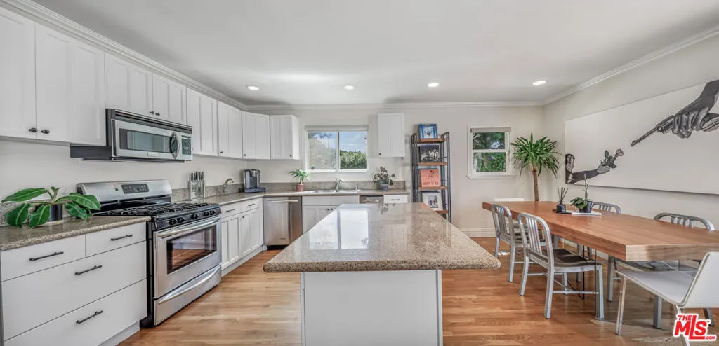 Welcome to this beautifully maintained single-story ranch-style home, ideally situated on a desirable corner lot with abundant street parking and NO HOA. Featuring 3 bedrooms and 2 bathrooms, offering a bright, open-concept floor plan filled with natural light, creating a warm and welcoming atmosphere throughout. Greeted by a generously sized front yard with mature landscaping and charming curb appeal. The front covered Spanish tiled patio provides the perfect setting to create a cozy seating area ideal for morning coffee, quiet reading, or for simply relaxing. Featuring a seamless blend of timeless character and modern upgrades, including well preserved original oak hardwood and tile flooring, high ceilings accented with tasteful crown molding and custom 6.5-inch baseboards. The thoughtfully designed kitchen features granite countertops, a kitchen island with additional storage and opens effortlessly to the main living areas, making it perfect for both everyday living and entertaining. Designed with comfort and flexibility in mind, this home includes central heating and air conditioning that extends into the garage offering a versatile space ideal for a workshop, home gym, or potential bonus living area. Enjoy your own private backyard retreat with no direct neighbors on the left side of the property, complete with mature landscaping, citrus trees, and lush greenery. This serene outdoor space is perfect for entertaining or simply enjoying year-round California living. The generous lot and unique layout provide excellent potential for possible future expansion, the addition of a pool, ADU, or custom outdoor living area, all enhanced by convenient side gate access. Located in a well-established neighborhood just minutes from the Santa Monica Promenade and beaches, conveniently located within walking proximity to grocery stores, coffee shops, shopping, dining, and major 405 and 10 freeway access for easy commuting. Don't miss this rare opportunity to own a versatile, move-in-ready home in a highly sought-after Westside location!
