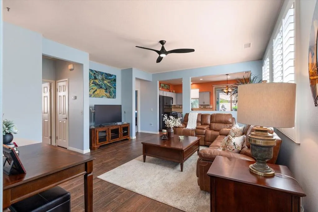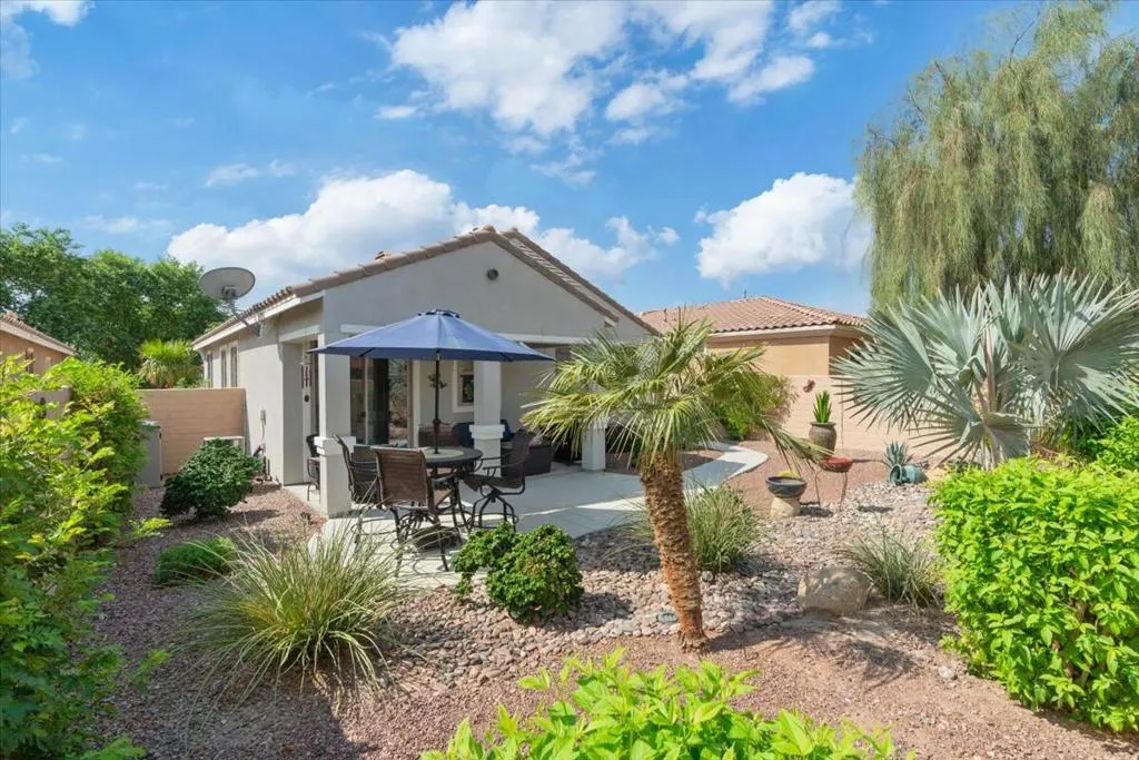 Welcome to this immaculate and charming turn-key Granada Plan, offering 1,099 sq ft of thoughtfully designed and decorated living space inside of the gates of Sun City Shadow Hills, a 55+ active community. Every detail reflects quality and care, from the freshly painted exterior and interior, custom window coverings and tasteful furnishings and artwork. This home creates a welcoming atmosphere that you'll love coming home to. The harmonious blend of style and comfort makes it an retreat for relaxation and entertaining alike. Experience the perfect balance of elegance and functionality in every corner with a seamless flow between the open living space and the kitchen and dining area. The primary suite provides comfort with dual vanities and a spacious walk-in closet. The additional bed room and guest bath will have your guests feeling welcome and relaxed. The private backyard oasis invites you amidst lush landscaping complete with gas grill, dining and sitting areas and a fire table for the cool winter evenings. The home is adequately stocked with all the kitchen tools and utensils a home cook may need. Tenants get to enjoy access to two clubhouses, fitness center, indoor & outdoor swimming pools, tennis & pickleball, bocce ball, shuffleboard, dog parks and much more! Golf is available at tenants expense (pay to play). Close to shopping, dining, Acrisure arena & I-10 freeway. AVAILABLE Late May for Long-term lease only.