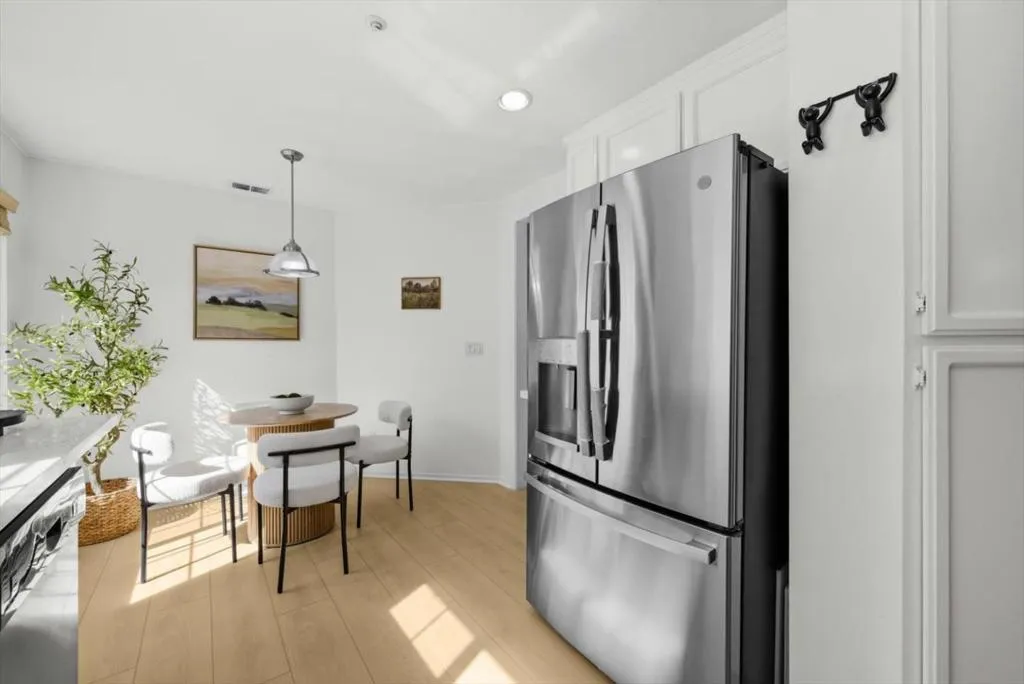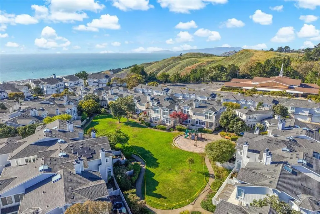 Within the exclusive gated community of Mariners Pointe, this rare top floor 3 bd, 2 bath residence offers a refined coastal lifestyle where privacy, light, and sweeping views come together effortlessly. Ceilings soar and an abundance of natural light pours into the open living space. Framed by tranquil mountain vistas, and hints of the Pacific Ocean, the living room creates a warm yet sophisticated setting, complete with a wood-burning fireplace. The dining area flows seamlessly for hosting intimate dinners or weekend gatherings.The kitchen features updated countertops, stainless steel appliances, and generous cabinetry. Retreat to a primary suite where vaulted ceilings and captivating views create a true sense of escape. A spacious walk-in closet and spa-inspired ensuite bath with dual vanities, and soaking tub. Two additional bedrooms offer flexibility for guests, a home office, or a growing household. Highlights include in-unit laundry, central heating, and the rare convenience of two private detached garages and guest parking. Mariners Pointe delivers a resort-like lifestyle with gated security, scenic walking trails, lush open spaces, clubhouse, fitness center, hot tub, and playground all just moments from Pacificas beaches, coastal trails, local shops, and dining.