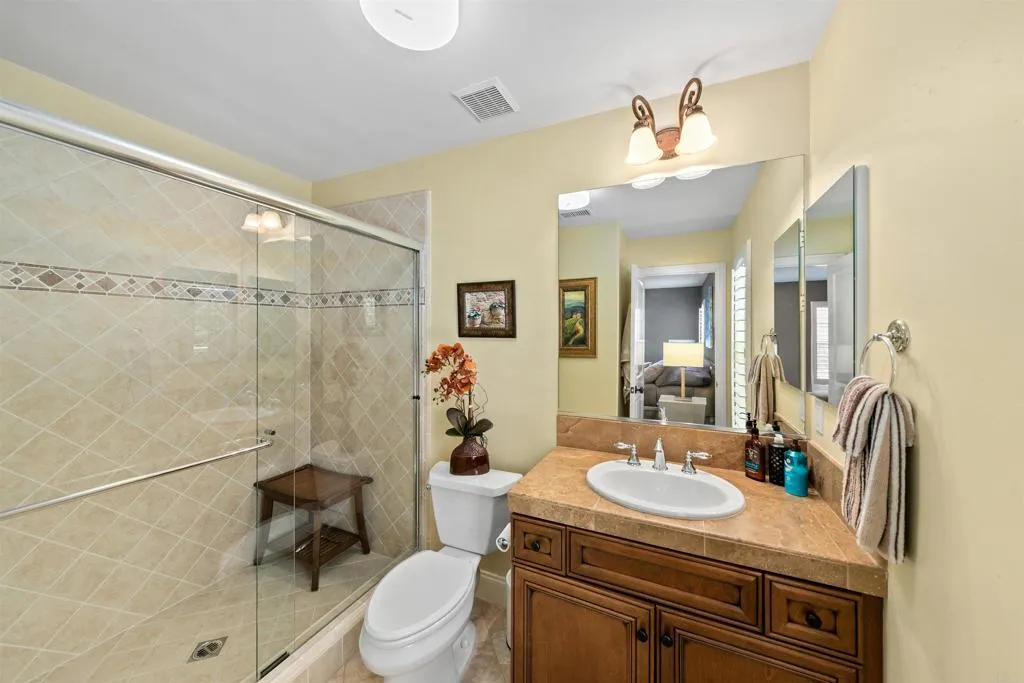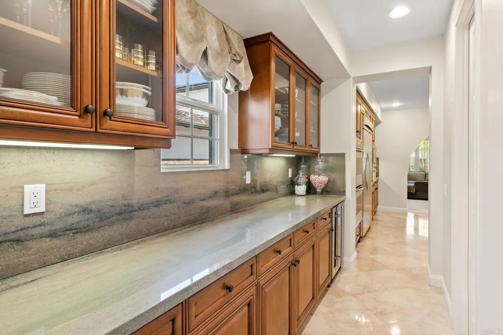 Spacious home located in the gated golf community of Santaluz. Formal living and dining rooms with butler’s pantry connecting to the kitchen. Gourmet kitchen features high-end appliances, stone countertops, large center island, and walk-in pantry. Family room with fireplace opens to breakfast nook. Upstairs primary suite includes private balcony, spa-style bathroom, and oversized walk-in closet. Additional upstairs en-suite bedroom plus a downstairs en-suite bedroom. Detached upstairs casita suitable for guests, office, or fitness space. Backyard offers built-in BBQ island, lawn area, and waterfall feature. Interior courtyard with fireplace provides a private gathering space. Gated driveway with porte cochère and three-car tandem garage. Optional Santaluz Spa membership available at additional cost.