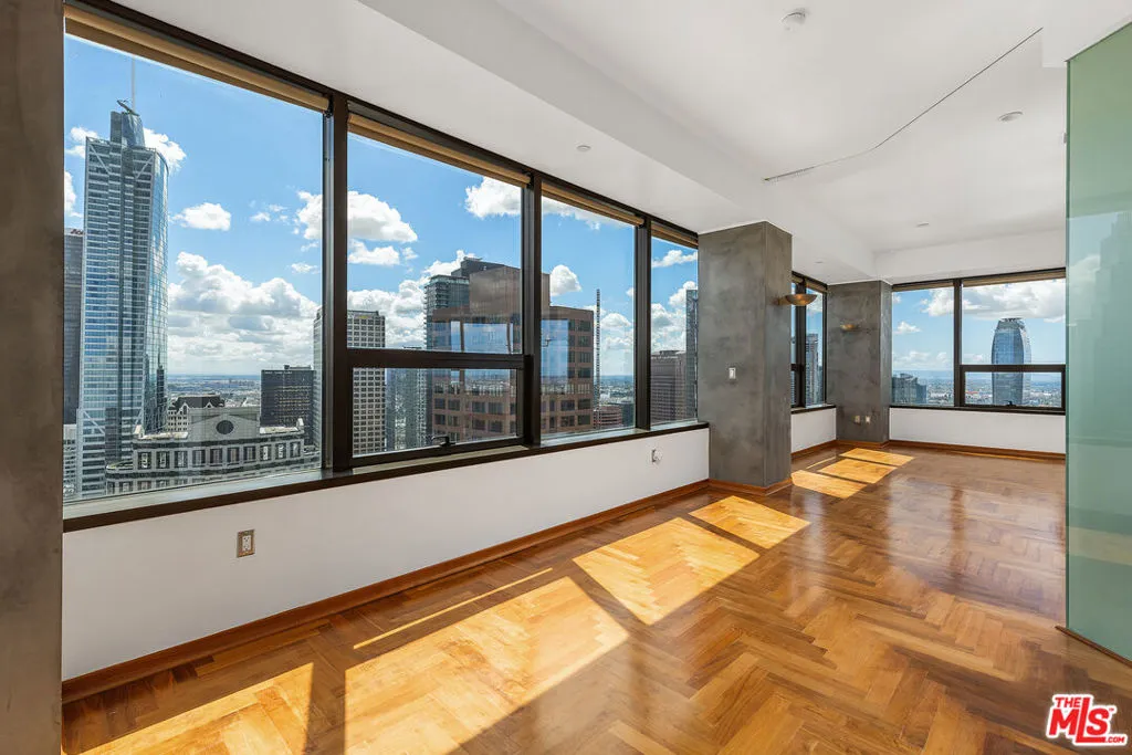 Experience elevated living in this stunning 29th-floor residence at the iconic 1100 Wilshire. This luxury condo showcases breathtaking panoramic views of the Los Angeles skyline through nearly floor-to-ceiling windows, filling the space with natural light. Originally a 2-bedroom, this home has been thoughtfully converted into a spacious 1-bedroom to create an expansive, open-concept layout ideal for modern living and entertaining with the option to easily convert back to a 2-bedroom. Featuring a sophisticated blend of marble and herringbone wood floors, custom wood wall finishes in bedroom, and high-end appliances, the residence offers refined finishes throughout and seamlessly connects the living, dining, and kitchen areas. Residents enjoy resort-style amenities including a rooftop heated pool and spa, cabanas, fitness center, 24-hour security, media and business center. Ideally located in the heart of DTLA, close to LA Live, Crypto.com Arena, the Convention Center, and the vibrant South Park district. Enjoy easy access to Whole Foods, FIG at 7th, The Bloc, top dining, nightlife, Metro transit, USC, and major freeways offering the ultimate in convenience and urban lifestyle.