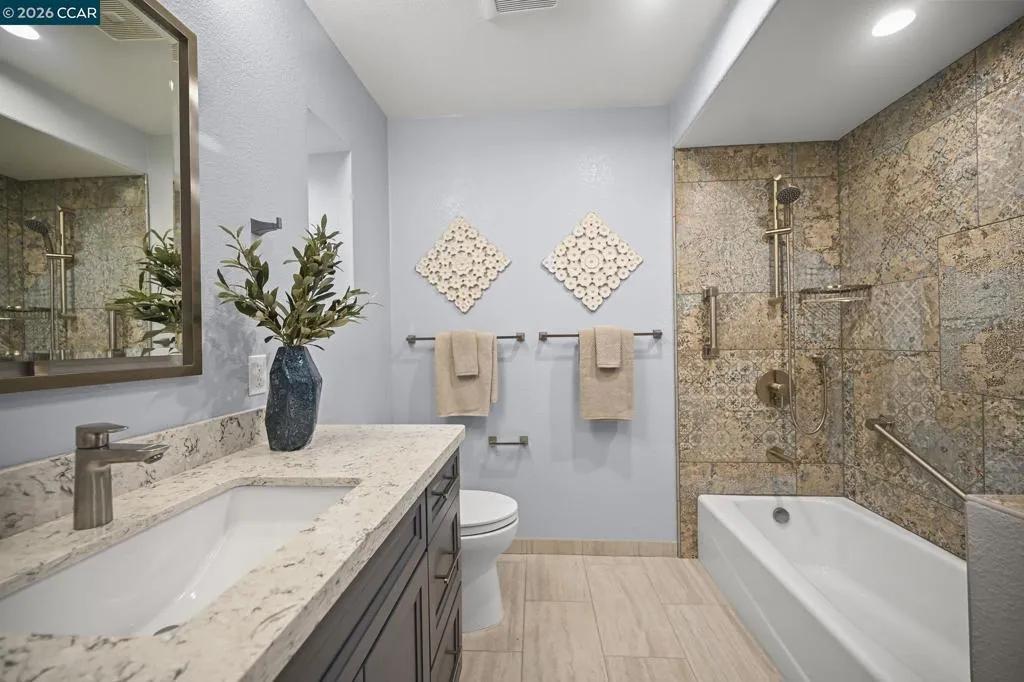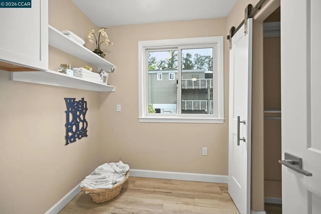 Don't miss this one of a kind Toupin Construction remodeled Sonoma Wrap model. Spacious 2 bedroom, 2 bathroom with added den/study with lots of sunshine. Open living area with spacious kitchen and dining area. Convenient separate laundry room with walk-in closet. The primary bedroom suite features an ensuite bath with a stylish sliding barn door. Both bedrooms offer generous closet space with mirrored doors and custom shelving. Beautiful luxury plank vinyl flooring runs throughout the home. Carport has added custom storage cabinets. Enjoy easy access to Rossmoor’s exceptional amenities, including golf, the Event Center, Dollar Pool, dining, and a wide variety of activities—all just a short walk away.