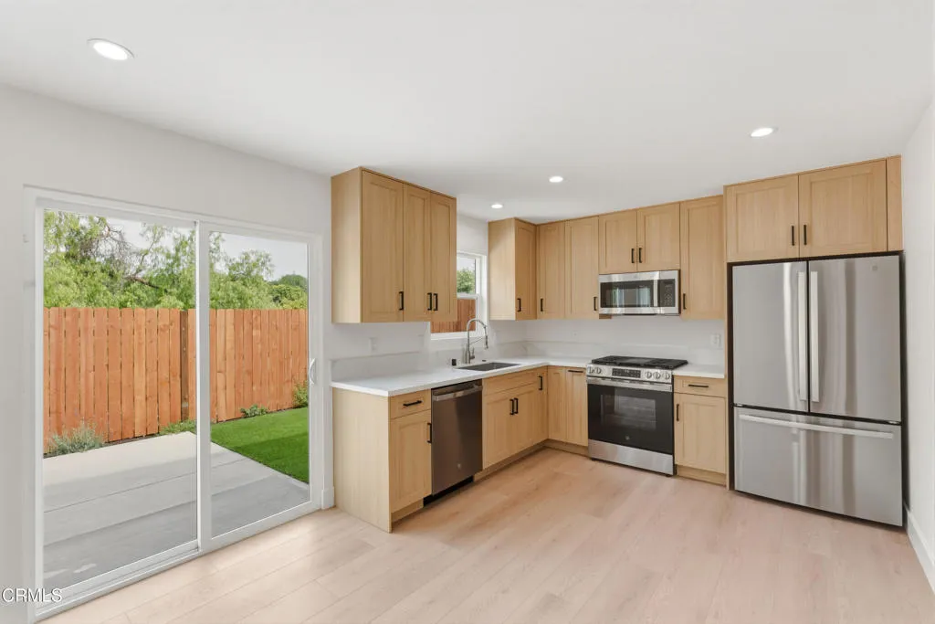 Fully remodeled and move-in ready, this 3-bedroom, 2-bath home offers the perfect blend of style, functionality, and future potential. The main residence is 1,288 sqft and features a bright open-concept layout with a beautifully designed kitchen complete with an island, oak cabinetry, quartz countertops, and stainless steel appliances. Major upgrades include a 200-amp electrical panel, new HVAC, new insulation, plumbing, and sewer lines. A 2-car garage, additional driveway parking, and newly completed landscaping with drought resistant plants.The property also includes a completely private 1-bedroom, 1-bath, 500 sqft JADU (with permits) with its own separate entrance, private driveway, and secluded backyard patio -thoughtfully positioned out of view from the main home. Equipped with a tankless water heater, split AC, indoor laundry, and its own electrical subpanel, this space is ideal for in-law quarters or generating rental income.Adding even more value, plans are in place for a 999 sqft- 3-bedroom, 2-bath ADU (pending building approval), offering an incredible opportunity for expansion or increased income potential.