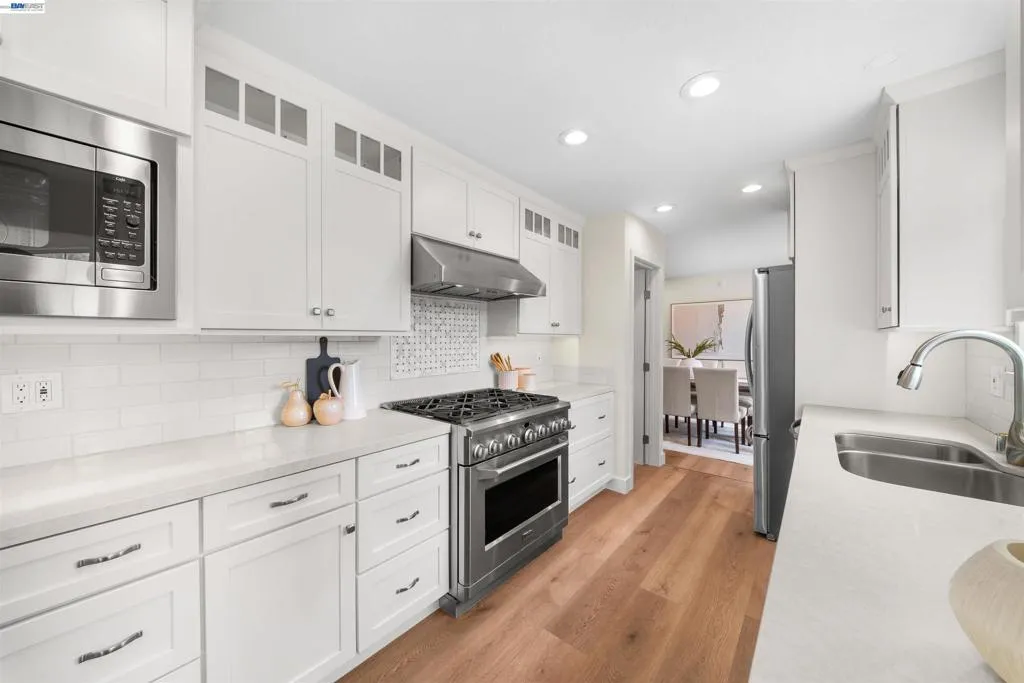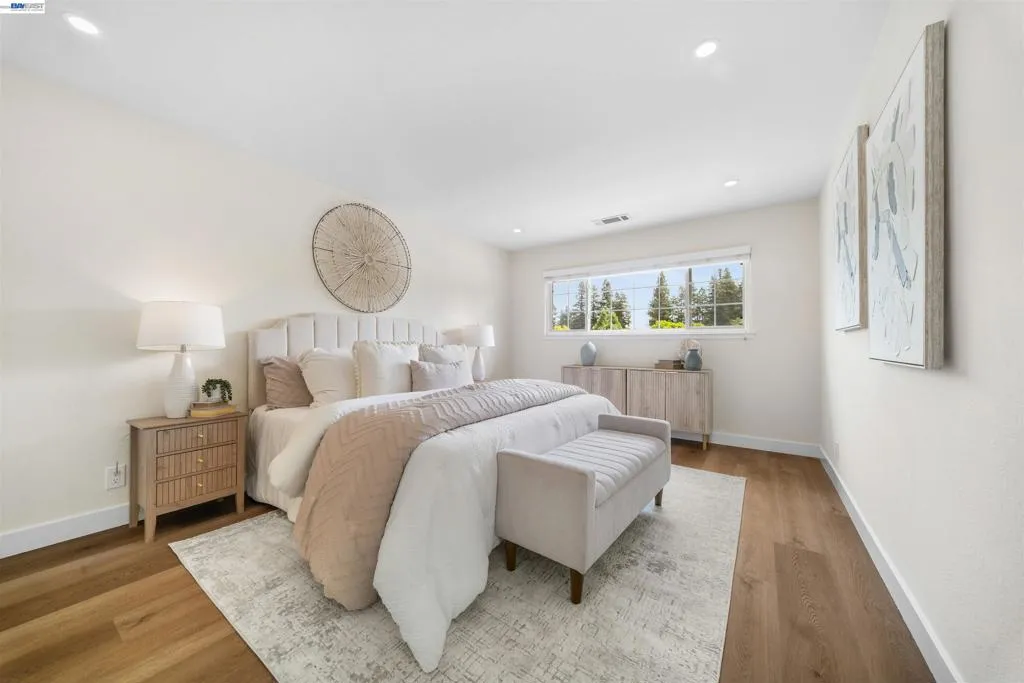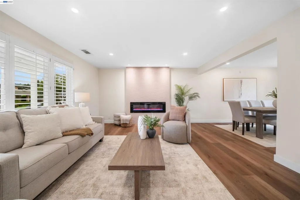 Step into a home where every detail has been thoughtfully curated, with over $250k in upgrades. Sleek new SPC floors that flow seamlessly throughout, creating a sense of cohesion and elegance. Natural light pours into every corner, and the striking new electric fireplace is a showstopper that sets the tone for cozy evenings and lively gatherings. The open-concept family room, enhanced with additional windows, amplifies the bright and airy ambiance. The remodeled kitchen blends modern design with practical functionality. Sleek countertops, Medallion cabinetry, stainless steel appliances with a 6-burner gas stove, ready to inspire your inner chef. The bathrooms are equally stunning, featuring an exquisite spa-inspired primary with slab-style tile, a frameless glass walk-in shower with rain head, sculptural soaking tub, and a sleek floating dual vanity—upgrades that turn daily routines into moments of indulgence. Outside, the huge front porch provides a welcoming retreat for sunrises, sunsets, and Fourth of July Fireworks. And the backyard? It’s a gardener's dream turned reality. This lush sanctuary is bursting with a serene water feature, exquisite outdoor kitchen with gas BBQ, fruit trees, vegetables, medicinal plants, and vibrant flowers, all thoughtfully arranged and supported by a drip irrigation system for effortless maintenance. Exceptional walkability to parks, shopping, the Black Ave pool, downtown Pleasanton, top-rated K-12 schools, and freeway access.