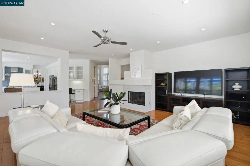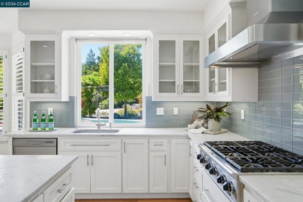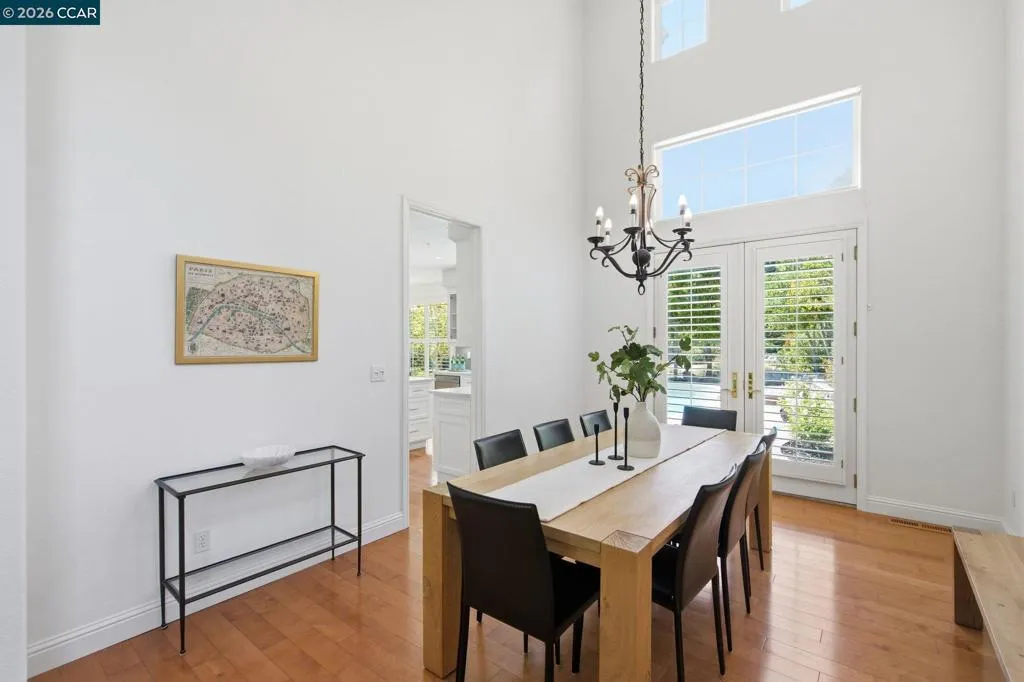 Gorgeous Moraga home located just a few minutes from Rancho Laguna Park. Soaring ceilings, walls of glass, lots of natural light, hardwood floors, generous size rooms and amazing flow. Striking living room with a high ceiling, gas fireplace and adjacent dining room with access to the backyard. Remodeled kitchen with white cabinetry, stone countertops, glass tile backsplash and high-end appliances. The spacious family room is adjacent to the kitchen. There are a bedroom suite and an office on the main level. The primary suite boasts a recently remodeled bathroom, large walk-in closet and a view of the pool & gardens. There is a fantastic bonus room on the second level of the residence that is currently set up as a home theater with projection TV. The backyard features a pool, patios, deck, sports court and lovely gardens. Welcome to Moraga, a highly desirable community with top rated public schools, hiking & biking trails, abundance of open space & Sunday Farmers Market.
