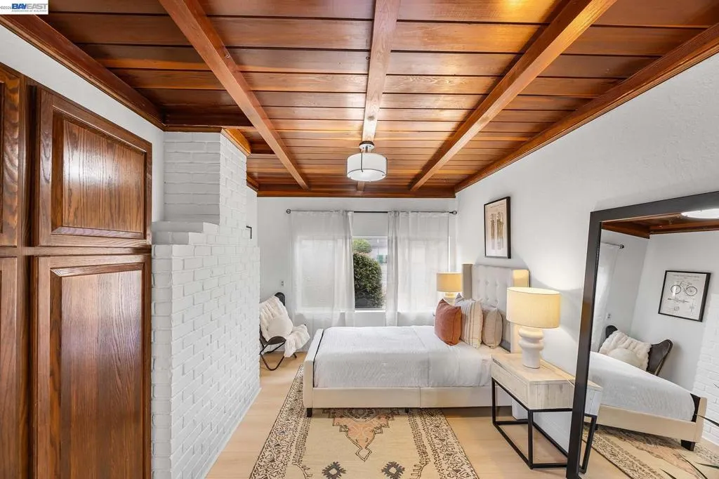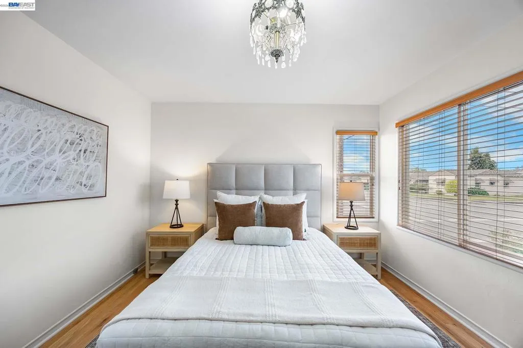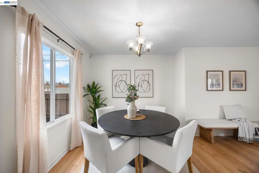 This beloved family home is available for the first time in 70 years. It’s no wonder the owners held onto this gem, w/ its unbeatable location for convenience and walkability. A short stroll brings you to Jefferson Elementary, the post office, favorite restaurants, and essential shopping. Toyon Park - a neighborhood treasure for kids, dogs, and gatherings - is a stone’s throw away, giving you everyday access to open green spaces, a playground, picnic tables, and bocce ball. Plus, this home is a dream for your commute, w/ a bus stop to BART and Oakland just steps away, and a quick hop to 580 and 880. Set on a generous 7,000 sf corner lot, your new home greets you w/ colorful roses in the front yard. Inside, your cozy sanctuary spans 1,569 sf, w/ 3 bedrooms, 1 bathroom, a spacious eat-in kitchen, and a large family room that features a wet bar and space for a work-from-home office. This home is ready to impress from day 1, thanks to its freshly painted interior, refinished hardwood floors, and new laminate floors in the kitchen and 3rd bedroom. Imagine opening a sliding glass door to your big backyard w/ a mature apple tree and ample space for playing and gardening. Important updates like earthquake bracing and dual-pane windows will also give you peace of mind. This is the one!