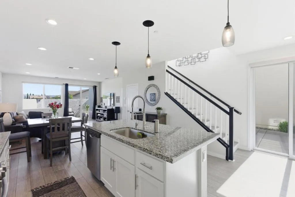 Welcome to 1325 Hernandez Way, a beautifully upgraded end-unit single family home on the coveted West side of Gilroy. Built in 2020, this home is only 6 years old and has been immaculately maintained. Positioned on a premium lot with only one neighbor, it provides privacy and offers an open, light-filled layout with dual pane windows and high ceilings. The kitchen features granite countertops, reverse osmosis, and opens to the dining area and living room. A bedroom and full bathroom on the ground floor provide flexibility for guests or multi-generational living. Upstairs, the primary suite offers a walk-in closet, en suite bathroom, and peaceful views. Modern amenities and energy efficient upgrades include solar panels, dual-zone heat and A/C, a WiFi-enabled tankless water heater, owned whole-house water purification system with sediment filter and softener, and integrated smart home features like wireless garage door opener, WiFi sprinklers, thermostats, smart lighting and video doorbell. Very low utility costs! Those looking for simplicity will appreciate the low-maintenance yard with professionally installed pavers. Exterior painted in 2025. EV-ready and equipped with Ring security, this move-in ready home blends comfort, convenience, and modern upgrades in a private setting.