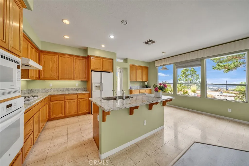 Welcome to this bright and spacious Mediterranean-style home in the renowned Vantage pointe community As you enter, a dramatic two-story foyer with a graceful curved staircase welcomes you into open living and dining areas filled with natural light and elegant arched doorways. The heart of the home features a generous kitchen with warm oak cabinetry, granite countertops, a large center island with double sink, and classic white appliances. Oversized windows flood the space with sunlight and create a seamless flow to the cozy fireplace area—perfect for family gatherings and entertaining. Upstairs, you will find spacious bedrooms with ample closet space and stunning views. The luxurious primary suite includes a large soaking tub, dual vanities, and a separate shower, offering a relaxing retreat. Outside, enjoy the private backyard gravel landscaping, mature trees, and BREATHTAKING PANORAMIC views of the city and hills—ideal for outdoor dining and relaxation.