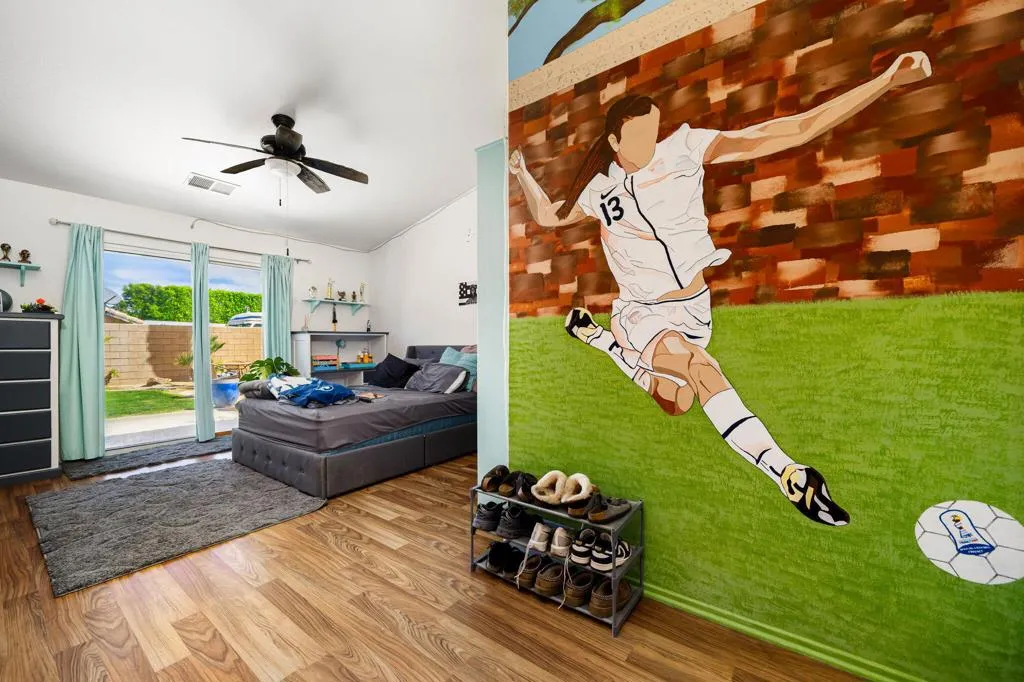 Situated on a desirable corner lot in Montecello II, this home offers comfort and versatility just two blocks from the La Quinta city limits. Thoughtfully designed, the property features vaulted ceilings, an inviting fireplace, expansive sliding glass doors, abundant natural light, and a spacious three-car garage with additional RV parking--perfect for all your lifestyle needs. As you approach the home, you'll pass the attached fourth bedroom/casita, complete with its own private entrance and bathroom--ideal for hosting out-of-town guests or creating a secluded home office. Inside, you're welcomed by an open-concept living and dining area with a seamless transition to the backyard, creating a bright and airy setting ideal for both everyday living and entertaining. The home showcases numerous upgrades throughout, including granite countertops, stainless steel appliances, maple cabinetry, and a tasteful mix of laminate, wood, and carpet flooring. The expansive primary suite occupies its own private wing, featuring a large walk-in closet and a spacious en-suite bathroom for added comfort and privacy.Outside, the nicely landscaped yard is easy to maintain with gardening service included, allowing you to relax and enjoy your surroundings. This home offers the perfect blend of flexible living space and exceptional curb appeal--ready for you to move in and make it your own. Bonus: Owned Solar, Low HOA, and Located in IID for lower-cost electricity!
