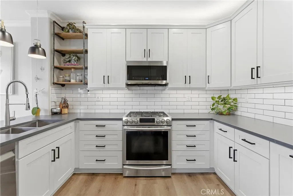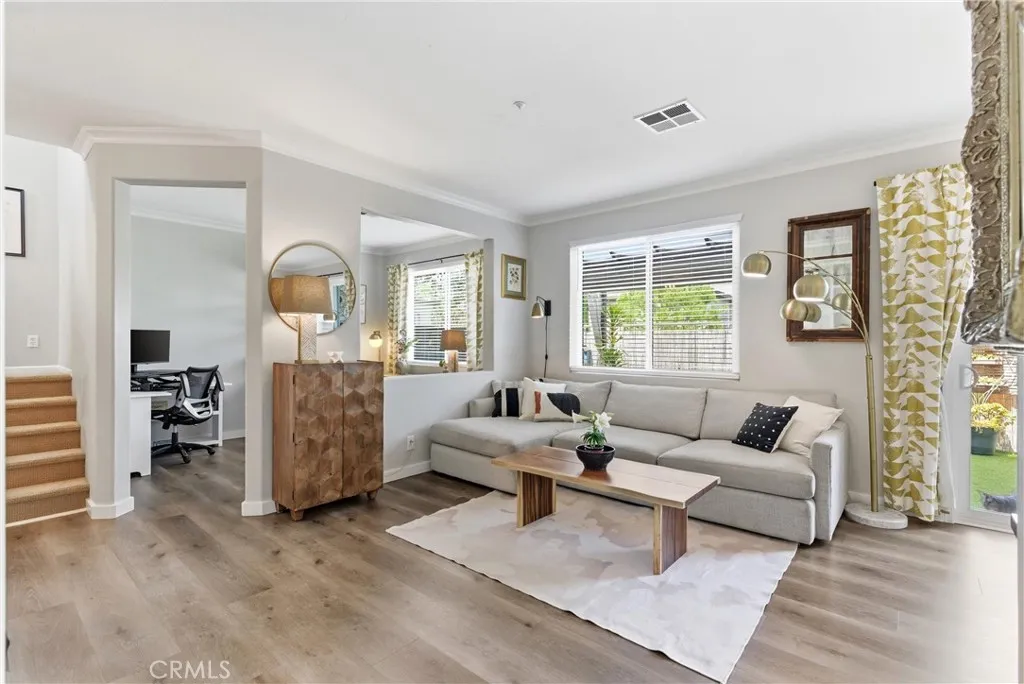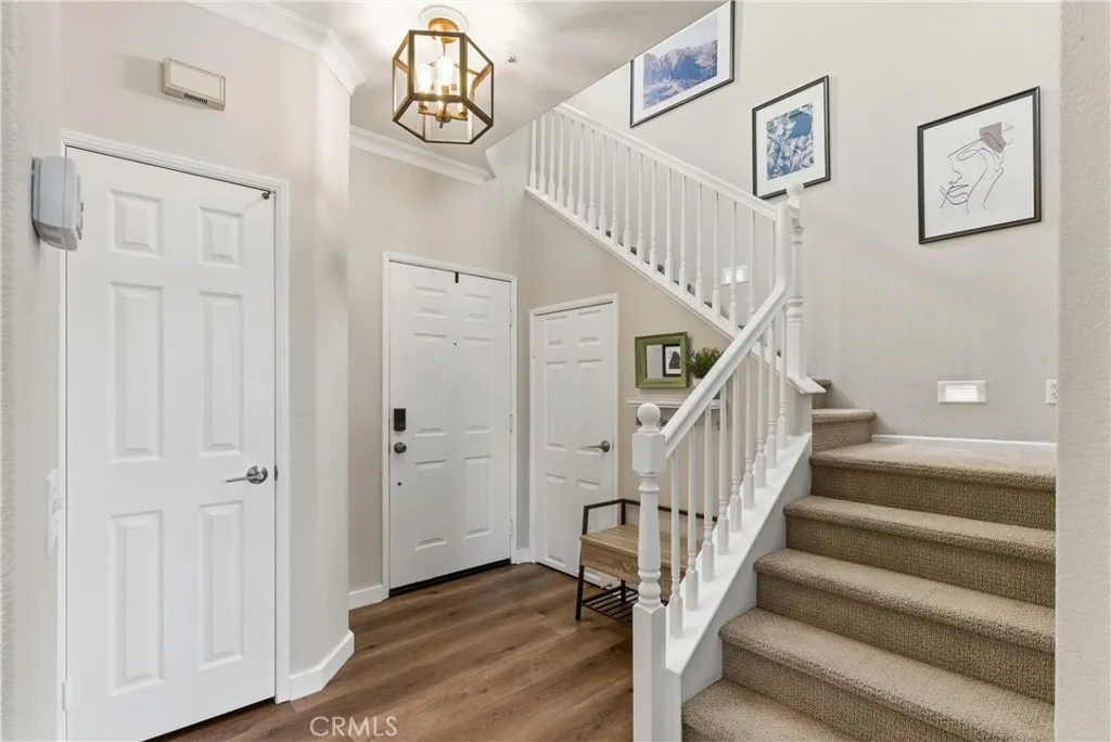 Experience elevated living in the exclusive gated community of Milano with this stunning residence at 106 Trofello, featuring three bedrooms and two and a half bathrooms across 1,402 square feet of meticulously maintained and highly upgraded living space. Defined by abundant natural light and a no-expense-spared approach to custom craftsmanship, this home offers a polished aesthetic throughout the main floor. The heart of the home is a fully remodeled kitchen boasting new solid wood KraftMaid cabinetry with soft-close technology, elegant quartz countertops, and a sophisticated ceramic tile backsplash. This high-end cabinetry continues into the living room, which features beautiful custom built-in shelving and a matching entertainment center with integrated TV mounting. Exceptional storage solutions are found throughout the home, including custom hardwood built-in cabinetry in the laundry room, closet organization in the primary walk-in closet, and custom hardwood shelving in the linen closet. Further modernizing the home are double-paned, UV-coated windows installed in 2021 for whole-house comfort and energy efficiency, as well as new quartz counters in all bathrooms. Practical updates include a brand-new garage door opener installed in 2025. Large windows throughout provide an airy, bright atmosphere in every room. Step outside to enjoy the peaceful environment of your backyard or take a short stroll to the sparkling community pool. Adventure awaits with prime access to local canyon trails that connect you to Laguna Beach. In addition to being zoned for the award-winning schools of Capistrano Unified School District, families will appreciate being within walking distance to the highest-rated elementary school in the area. With amazing neighbors and a great sense of community, this property represents a rare opportunity to own one of the most upgraded homes in the neighborhood.