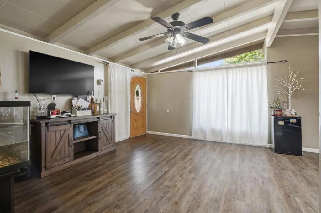 Wonderful single-level home in desirable Lakewood Village featuring 3 bedrooms and 3 bathrooms with a bright, open floor plan designed for easy living. Large windows fill the home with natural light, creating a warm and inviting atmosphere throughout. The low-maintenance backyard offers the perfect space for relaxing or entertaining, complete with additional storage for convenience. The garage has been thoughtfully converted into bonus living space and includes a third bathroom, ideal for a home office, guest suite, gym, or flex space to fit your needs. Located just minutes from parks, shopping, dining, and major tech campuses, this home combines comfort, functionality, and an unbeatable location.