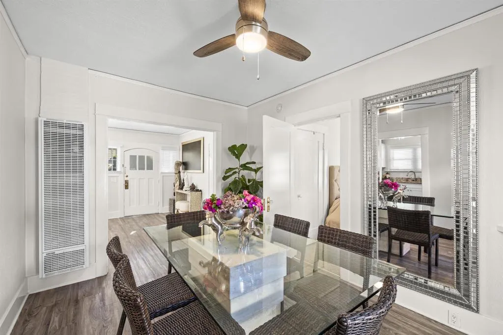 Circa 1920’s beach cottage exudes curb appeal with its oh so pretty garden showing off springs’ new blossoms. Three bedrooms, Two full baths, dining room, updated kitchen, interior laundry nook, private-fenced patio and 1-car garage. A superb location boasting Star Park at the end of the block and close proximity to Coronado State Beach, Hotel Del and tons of local eateries and shops. You might think you are seeing double as the neighboring address 1011 Flora was built by the same builder and mirrors the charm and style of this well cared for residence. 1011 Flora is being sold separately. These parcels could be part of a combined purchase to create an even more advantageous opportunity. Image all the possibilities.