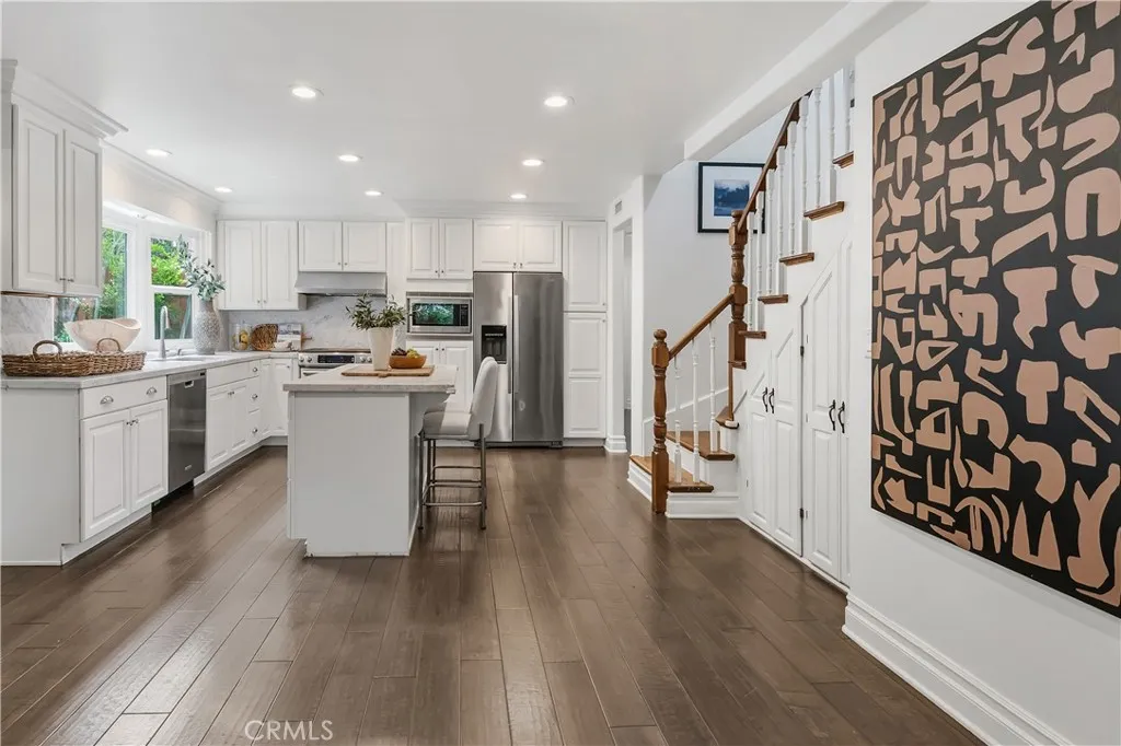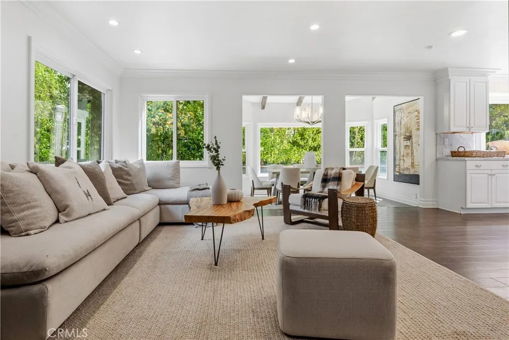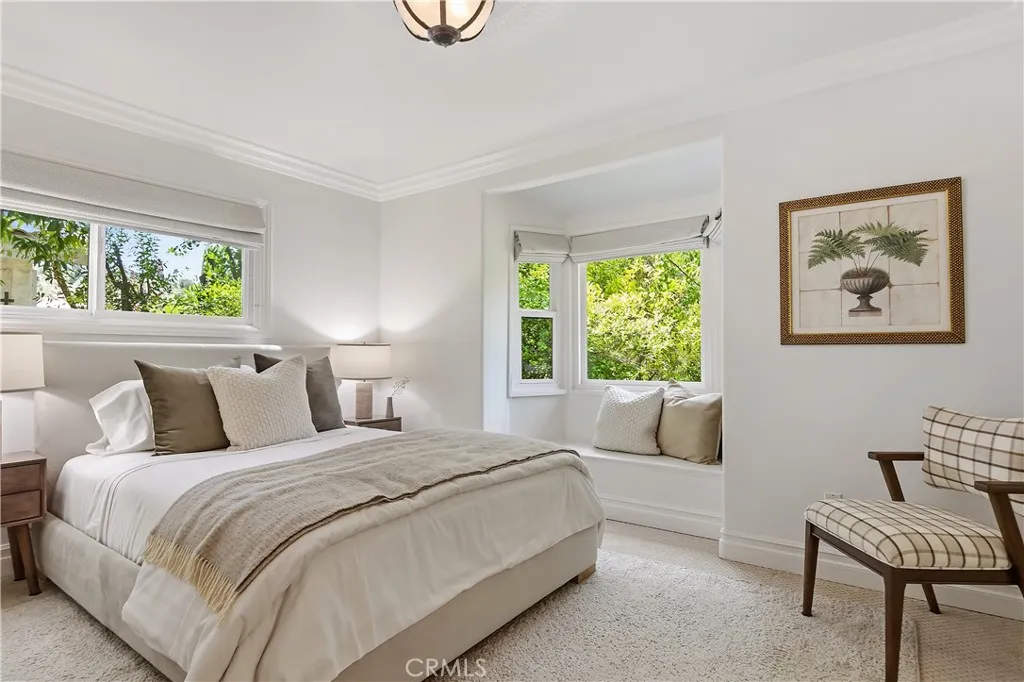 Nestled in the tranquil Bird Streets of Calabasas sits this beautiful 5bd/3ba gorgeous home. Surrounded by tall private hedges, this warm and welcoming landscape invites you in on first approach. The thoughtfully designed floor plan provides seamless indoor-outdoor flow and offers exceptional flexibility for today’s lifestyle—whether working from home, hosting guests or multigenerational living. The living room is spacious and bright. The kitchen is well-equipped with a Carrara marble center island kitchen and crisp white cabinetry. It opens to an inviting family room—anchored by a statement fireplace—and a formal dining room which overlooks a lush, tree-lined backyard. The main level includes two bedrooms connected by a Jack-and-Jill bath while dual staircases lead upstairs. The primary suite is a private retreat with fireplace, walk-in closet and a spa-inspired bath featuring Carrara finishes, dual vanities, soaking tub and glass-enclosed shower. Two balconies offer peaceful outdoor escapes. Another section of the house also includes an expansive secondary bedroom with fireplace, perfect as a bonus or media space, along with an additional bedroom and a bathroom. Designed for effortless California living and entertaining, the grounds feature a fully-equipped outdoor kitchen with a BBQ grill, smoker and a pizza oven. The gas fire pit is perfect for hosting friends or enjoying a quiet evening at home. A spacious two-car garage with additional storage completes the offering. The neighborhood is bucolic and charming with winding streets and mature trees and is just moments from The Commons, scenic hiking trails and within the top-rated and highly sought-after Las Virgenes School District. The home is move-in ready and beautifully updated offering the perfect blend of comfort, style and elevated Calabasas living.