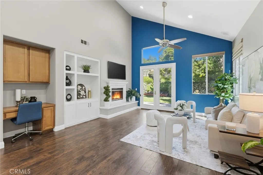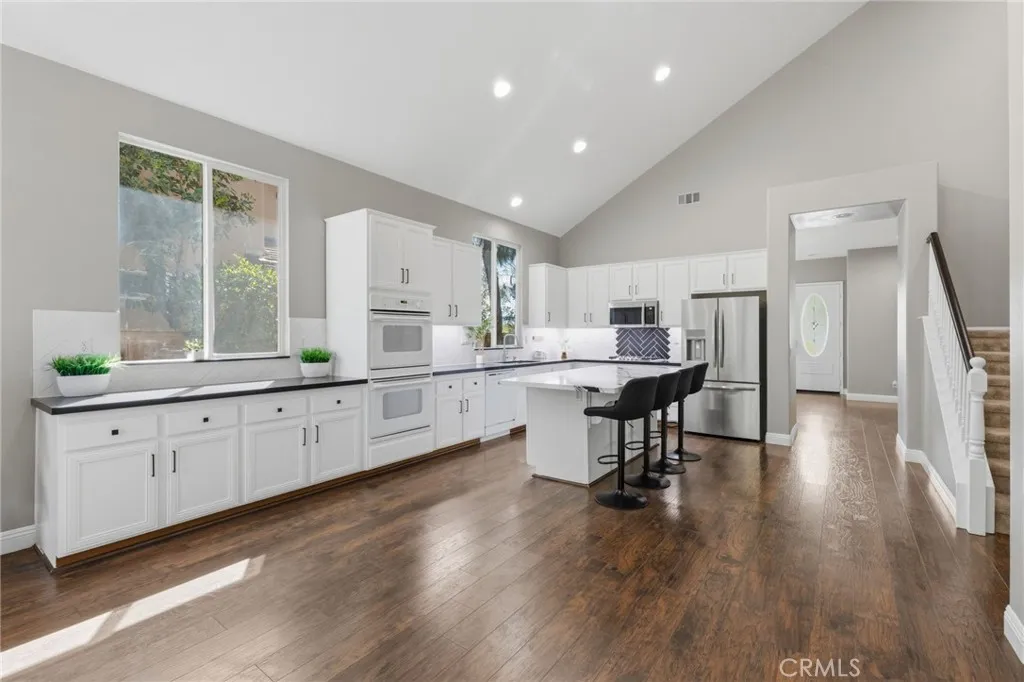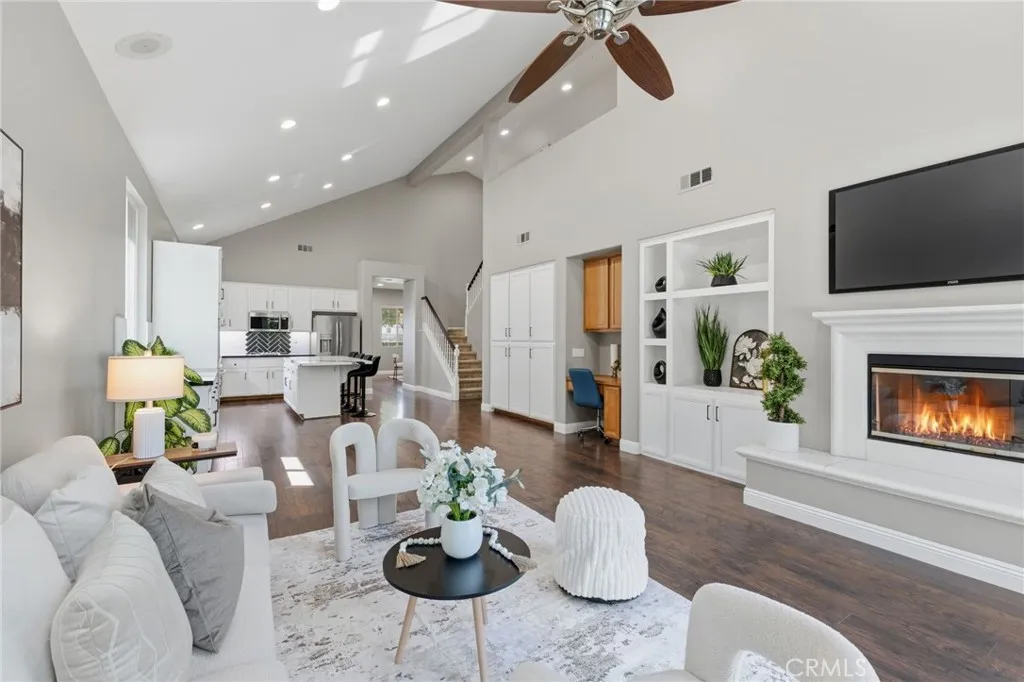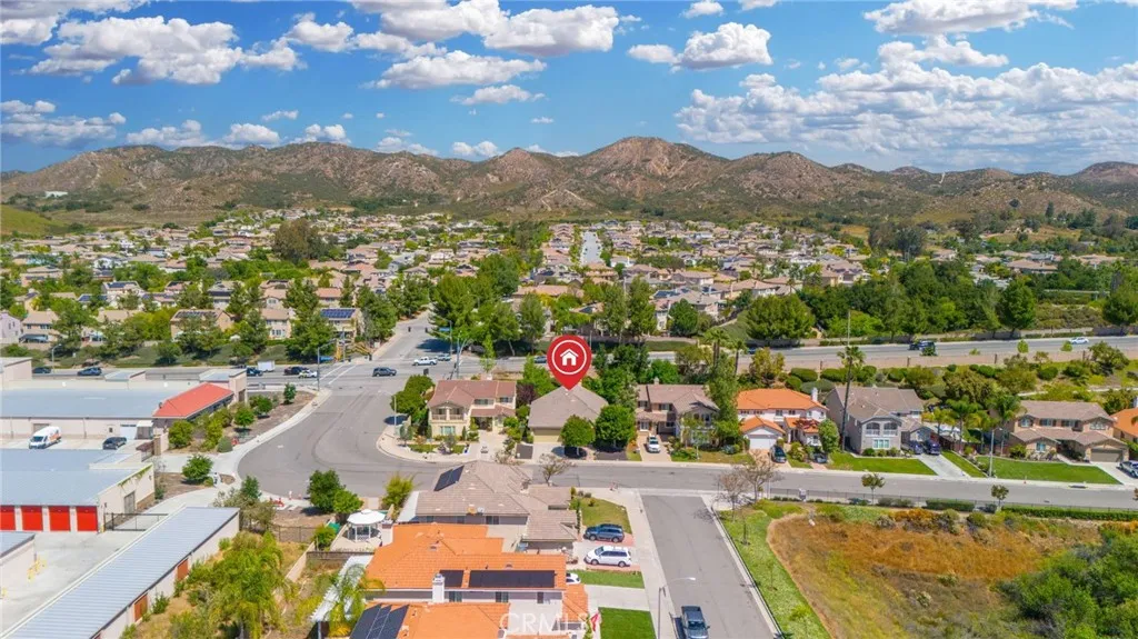 Experience elevated living in this STUNNING two-story, 4-bedroom, 3-bathroom, turn-key residence in the heart of Wildomar, boasting soaring vaulted ceilings, tasteful flooring, abundant natural light, and an open-concept layout that feels both grand and inviting. Upon entry, you’ll find a welcoming seating area and formal dining space. The beautifully upgraded kitchen blends sophistication with function—featuring quartz countertops, new stainless steel appliances, a large center island, abundant cabinet space, and a dedicated office nook. The space flows effortlessly into the family room with a cozy fireplace, creating a warm and elegant setting for both everyday living and entertaining. The main level lives like a single story, with a serene primary suite retreat complete with a spacious walk-in closet, French doors that open to the garden-like backyard, and a spa-inspired en suite bath. Two additional bedrooms on the main floor offer flexibility for family, guests, or multigenerational living. Tucked away upstairs is the fourth bedroom, full bathroom, and spacious loft, creating the perfect setting for a refined media lounge, home office, or private secondary living space. Outside, enjoy an impeccably designed backyard with mature trees, lush surroundings, high cinderblock walls, and no rear neighbors to enhance privacy. Perfectly positioned in a quiet, desirable community with LOW taxes and a LOW HOA, this home offers the ideal balance of serenity and convenience—just minutes from top-rated schools, shopping, dining, and easy access to the 15 and 215 freeways. Blending modern comfort, thoughtful design, and a prime location, this exceptional Wildomar residence is ready to welcome you home!