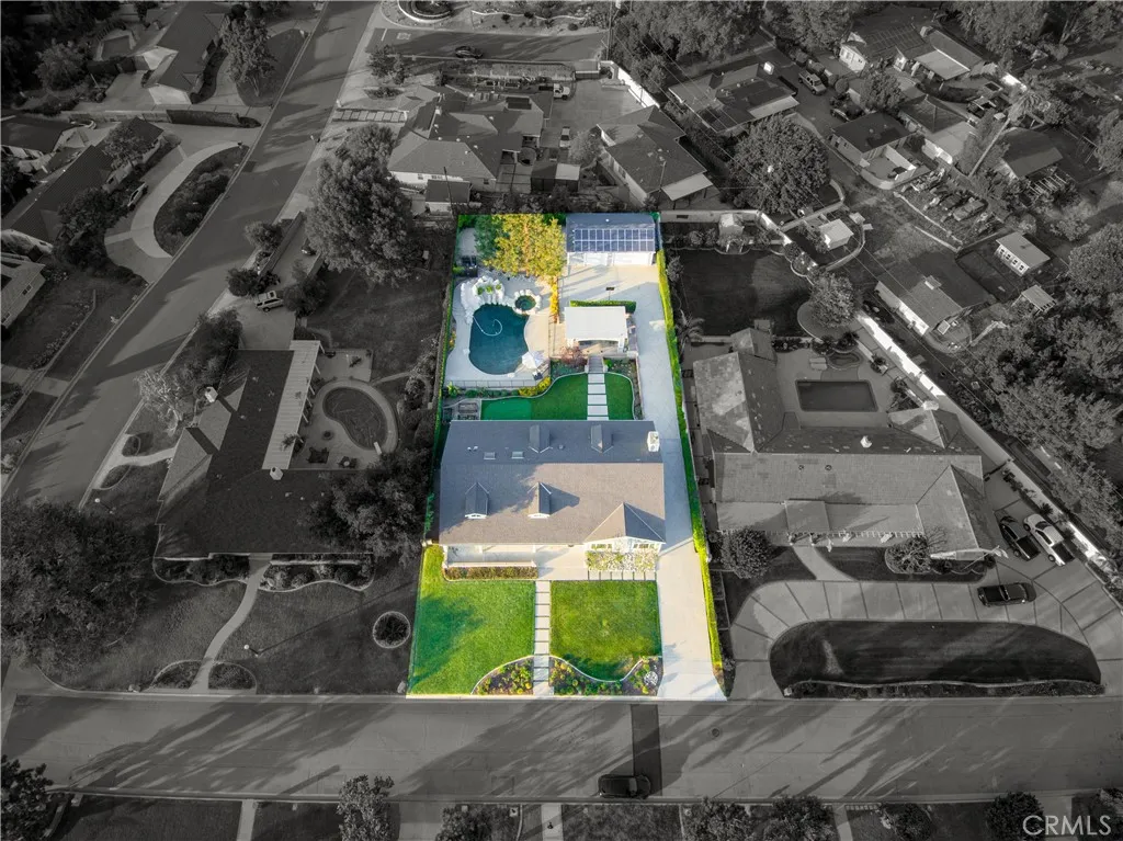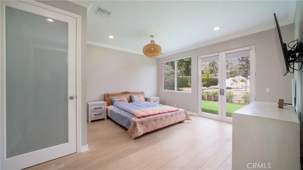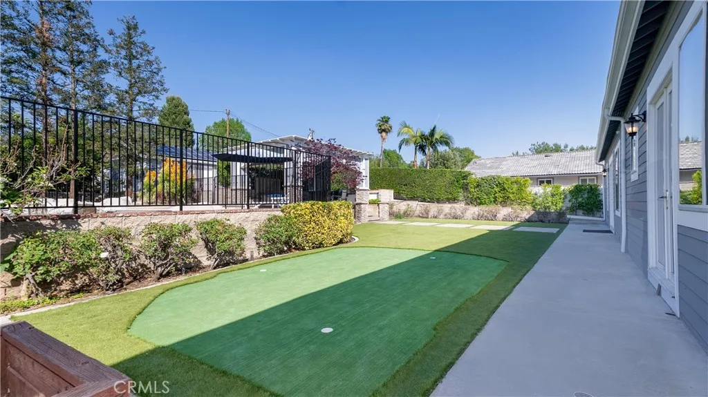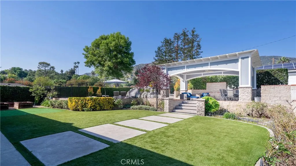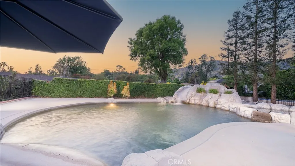 Meticulously custom-built ranch-style home in the foothills of North Glendora. Tucked away on a quiet cul-de-sac, this private and spacious residence offers 4 bedrooms, 5 bathrooms, and the option for a 5th bedroom. Set on a generous 1/2 acre lot, the property combines comfort, functionality, and scenic mountain views in a secure, upscale setting. Designed for both everyday living and entertaining, the home centers around an expansive chef's kitchen that opens seamlessly to the family room. High ceilings and a beautiful fireplace create a warm, inviting space for gatherings. The kitchen features an oversized island, granite countertops with full backsplash, abundant white cabinetry, Thermador high-end appliances, including a 6-burner cooktop with pot filler, and a professional-grade hood. The primary suite offers direct backyard access and includes a spa-like bathroom with dual vanities, a large jacuzzi tub, a walk-in shower with rain showerhead, and a large walk-in closet. All secondary bedrooms feature walk-in closets, a convenient Jack-and-Jill bathroom, and frosted-glass doors. Entertainment options are everywhere. Inside, you will find a private movie theater with a projector, screen, built-in speakers, 7 theater-style seats, and a small bar seating area. A spacious game room offers space for billiards or air hockey, while outdoors, you can enjoy a basketball court, in-ground trampoline, and your own putting green. Additional highlights include natural wood flooring, crown molding & recessed lighting throughout, 5.1 surround sound in the family room, and a media niche with custom cabinetry. Step outside to a north-facing backyard retreat. Enjoy a large covered patio, built-in BBQ, glass rock fire pit, and sweeping mountain views. The resort-style pool with a baja shelf and spa is crafted with natural rock, complete with a waterfall and slide, and pebble-tech coating. Curb appeal stands out with a freshly painted exterior, a large covered front porch with a hanging swing, lighting, & security cameras add both convenience and peace of mind on beautifully landscaped grounds featuring custom brickwork. This is a home built for comfort, connection, and everyday enjoyment, offering a rare blend of space, privacy, and high-end amenities in one of Glendora's most desirable neighborhoods. House was rebuilt in 2004 by previous owner. This home is complete w/5.6KW owned solar system, whole house lighting system, & 400AMP underground electric system.