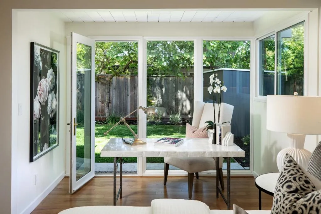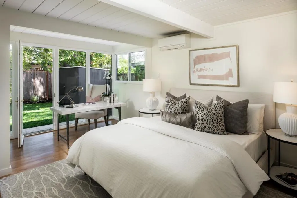 Entire home freshly renovated with 4-bedrooms and 2 office spaces. This flexible floor plan includes a private office, an oversized primary suite with space for a second office or fitness area, and a versatile fourth bedroom perfect for a media room or teen retreat. Located in one of Eichler's rare curvilinear neighborhoods, Fairmeadow is known for its circular streets that promote privacy, community, and traffic calming. Thoughtfully redone in 2019, upgrades include a modern kitchen with custom cabinets, 5 efficient mini splits for effective heating and cooling, renovated bathrooms, new energy efficient windows, and high end flooring. Designer paint tones, abundant storage, the office, and a locking outdoor shed enhance both function and style. The light-filled interior opens to a serene backyard with lush lawn, mature trees, fruit plantings, and seasonal blooms. Its truly a private outdoor sanctuary. Enjoy a highly walkable location near top-rated schools including Fairmeadow Elementary School, Hoover Elementary and Jane Lathrop Stanford (JLS) Middle School, plus super close proximity to Mitchell Park, local dining including Tofu House, shopping, and biking distance to Gunn High School. Move-in ready and designed for modern living with timeless Eichler style.