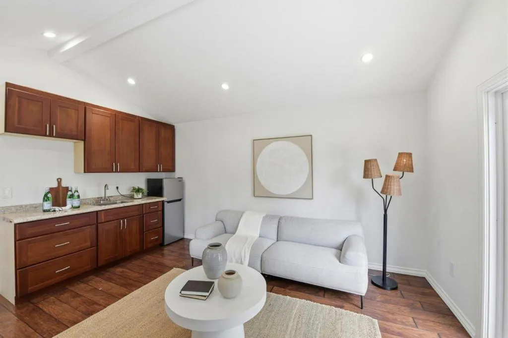Centrally located Sunnyvale home in Lakewood Village. This home has so many possibilities. Live in it the way it is or potentially split the lot and develop under SB9 (dual urban opportunity housing). Buyer to verify with the City. The property currently has a front house and a Cabana/ADU. Updated 3/2 front house has been freshly painted, new flooring, new lighting, updated heating system, and updated primary bath. Large windows flood the home with natural lighting. Dual pane windows. The kitchen has been previously remodeled with a gas stove and granite countertops. New dishwasher. Washer and dryer stay with the front house. 2-car garage has plumbing for shower and toilet. New roof was finaled 5/25. Charming Cabana/ADU is a 1/1 built in 2018 with permits. ADU does not have heat or a kitchenette. This is a must see. Property is located in the middle of a tree-lined street. Easy access to 101 and major tech companies.