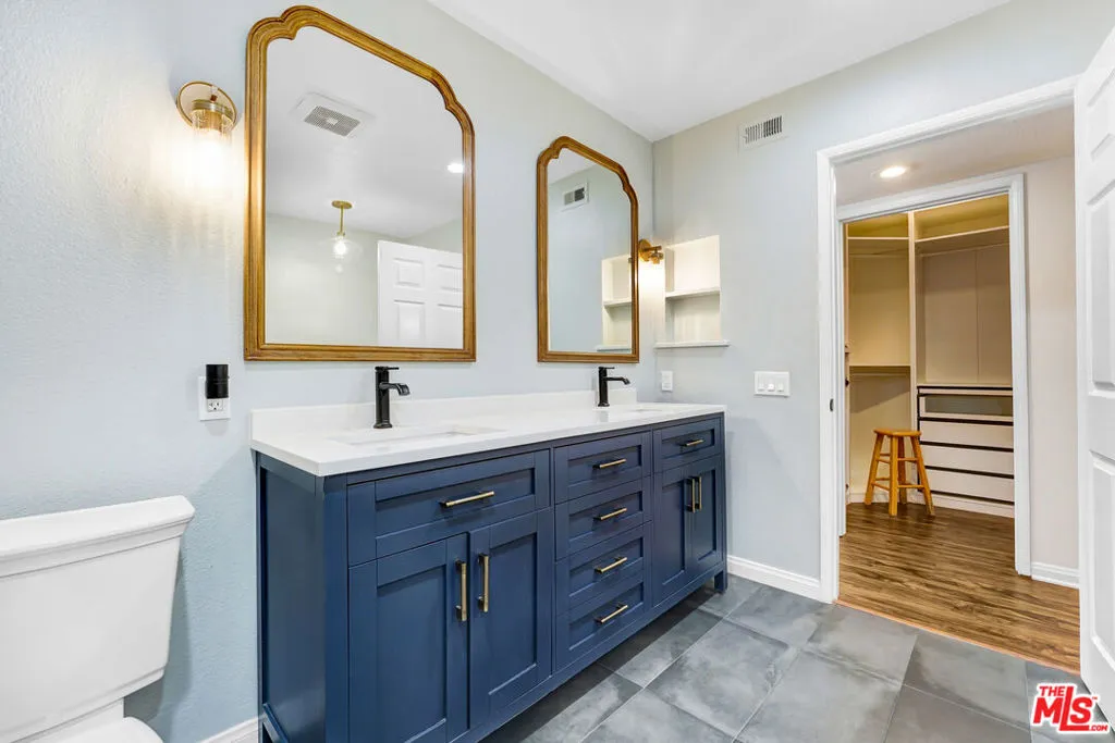 Located in one of Sherman Oaks' most sought-after neighborhoods, this beautifully renovated townhome-style condo is just steps away from Whole Foods, Burke Williams, Regal Cinemas, acclaimed restaurants, and charming local cafes. Upstairs, the bright reverse floor plan offers an open-concept living space featuring a spacious living room with a stunning fireplace, a dining area with a sleek wet bar and a chef-inspired kitchen equipped with stainless steel appliances, rich cabinetry, and ample counter space. Downstairs, the serene primary suite boasts a walk-in closet, a second fireplace, and a spa-like ensuite bath complete with a freestanding soaking tub, marble double vanity, and a luxurious rain shower. The second bedroom includes its own full bath ideal for a guest suite, nursery, or home office and opens through French doors to a private patio overlooking lush courtyard greenery. One of the unit's standout features is the peace and quiet while inside the unit, offering a true retreat from the city while still being at the center of it all. Additional highlights include secure building entry, two assigned parking spaces in a gated subterranean garage, and a private storage area. This beautiful neighborhood combines suburban charm with urban convenience, tree-lined streets, top-tier schools, and easy access to the 101 and 405 freeways. Located close to the Sherman Oaks Galleria and LA's vibrant media hubs, it's a perfect blend of comfort and connectivity. (Property is currently tenant occupied and can be previewed with 24 hours notice. Photos were taken prior to current tenant occupancy and reflect the property's condition at that time. The lease term to begin 6/15/26.)