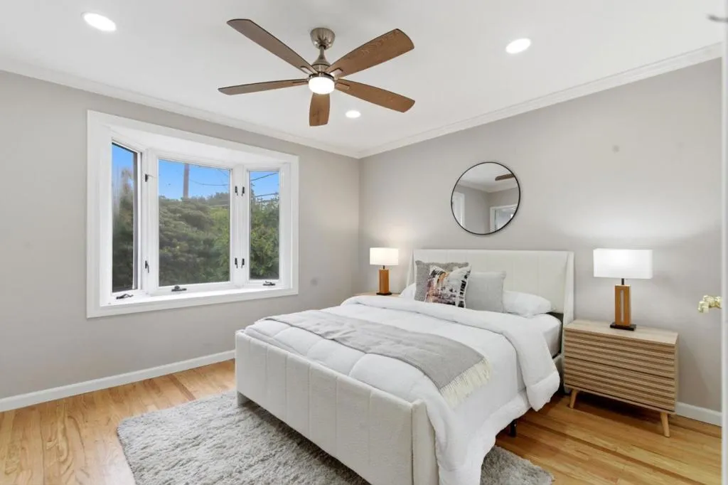 Beautifully updated and move-in ready, this true north-facing residence is located in Santa Claras highly sought-after 95051. Natural light fills the home through skylights on both levels, complemented by an oversized living room window that brings the backyard garden indoors. The refined kitchen features all-new appliances, new cabinetry with soft-closing drawers and cabinets, and a skylight. Classic refinished red oak hardwood floors run throughout the home, while the separate family room features new LVP flooring for added flexibility. Modern 5K lighting and fresh interior paint create a clean, cohesive design, and the spacious living area showcases exposed beam ceilings. Upgrades include new Anderson dual-pane windows, a new furnace, and a recirculating hot water system for energy efficiency. The upstairs landing includes a laundry chute. The private backyard offers a peaceful, garden-style setting with mature landscaping, brick hardscape, drip irrigation, and a covered pergola. Ideally located near Apple, NVIDIA, Adobe, Google, and Intel, with Santa Clara utilities and close to shopping, dining, and more.