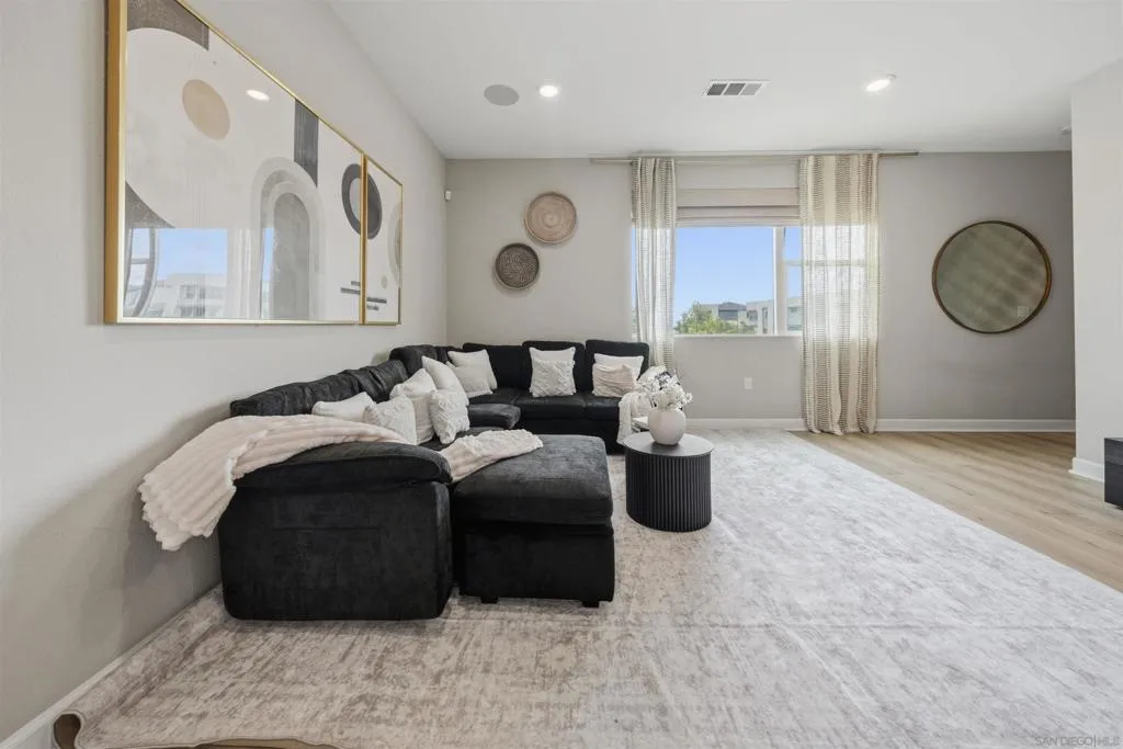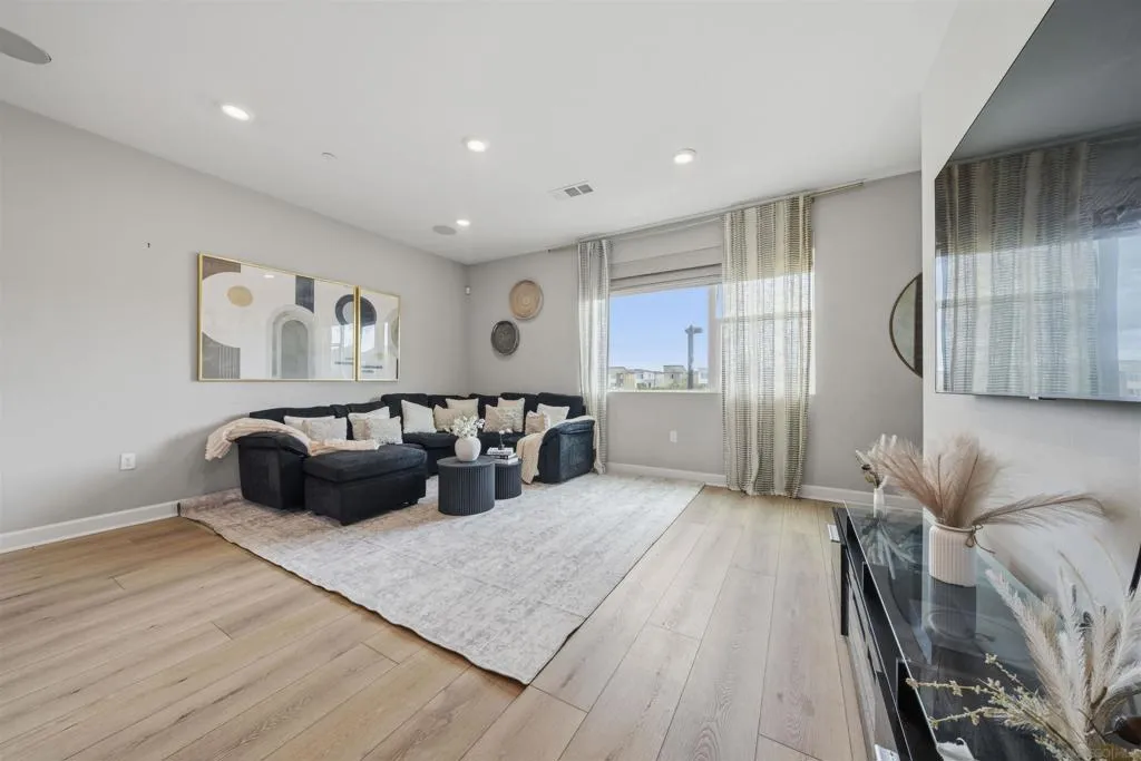 Modern 4-bedroom, 3-bath, 1,618 square feet, three-level condo in the highly desirable Vibe at Millenia community—originally a model home! Bright open-concept layout featuring a chef’s kitchen with quartz countertops, shaker cabinetry, stainless steel appliances, and an oversized island. First level patio with park views and direct sunlight. Energy-efficient upgrades include paid solar, tankless water heater. First floor offers a full bedroom—ideal for guests. Spacious primary suite with walk-in closet, dual vanity sinks and stand alone shower. 2-car attached garage. Enjoy resort-style amenities including pool, parks, dog park, playgrounds, and community garden. Prime location near Otay Ranch Town Center, dining, shopping, and easy freeway access!