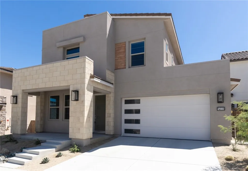 Be the first to experience the pinnacle of modern desert living in this brand-new Nova home by Woodbridge Pacific Group, perfectly situated in the prestigious University Park community. This stunning 4-bedroom, 3.5-bathroom residence is designed for both style and entertainment, featuring a spacious upstairs media room, private downstairs suite with full bathroom, chef-inspired kitchen with gas stove, stainless steel Samsung refrigerator and dedicated laundry room including premium Whirlpool appliances. Save money on your electric bill with solar panels and a backup battery as well as two pre-wired EV outlets in the garage. Residents of University Park enjoy "The Grove," an expansive amenity hub featuring resort, lap, and kiddie pools, a bubbling spa, pickleball and bocce courts, a fitness center, and a shaded playground. Centrally located just two minutes from the highly anticipated Disney Cotino development and seconds away from the Coachella Valley's premier shops and restaurants. Schedule your private tour today and be the first to call this stunning new residence and community home!