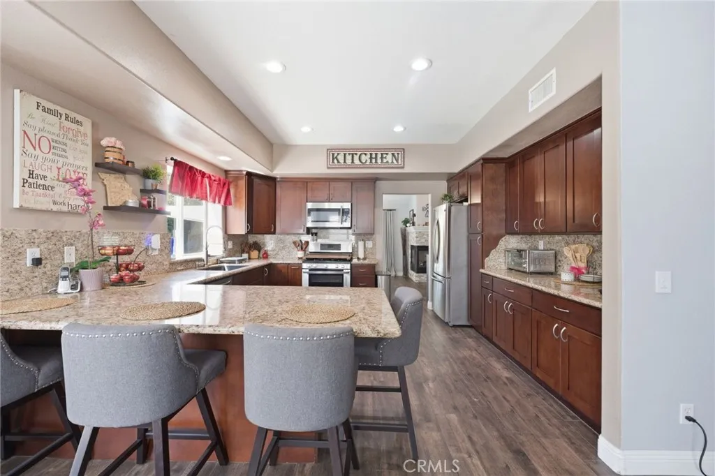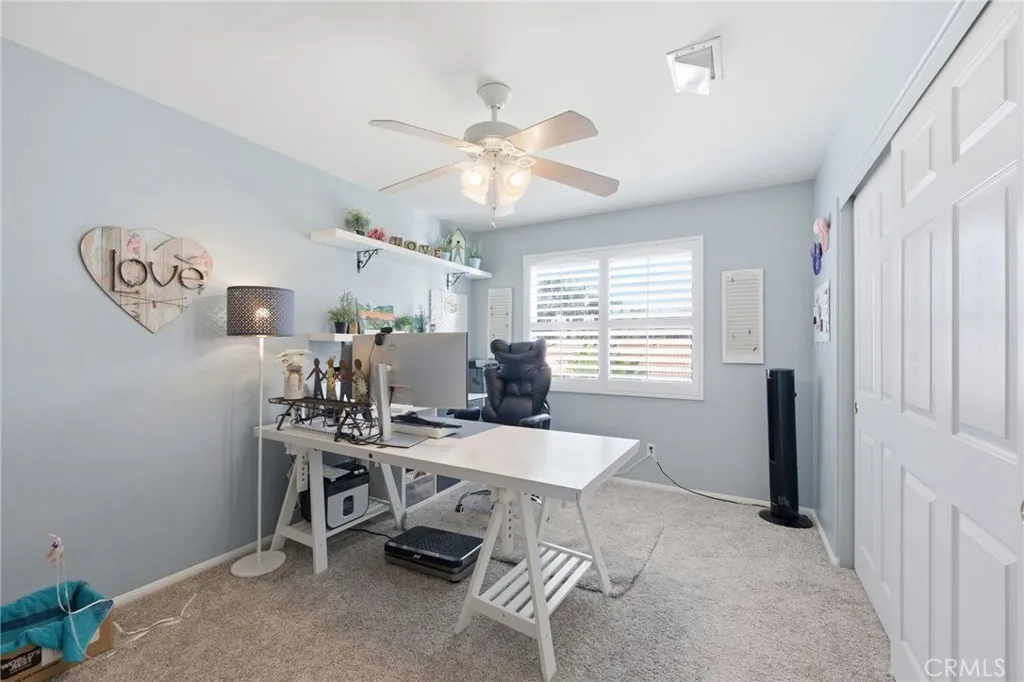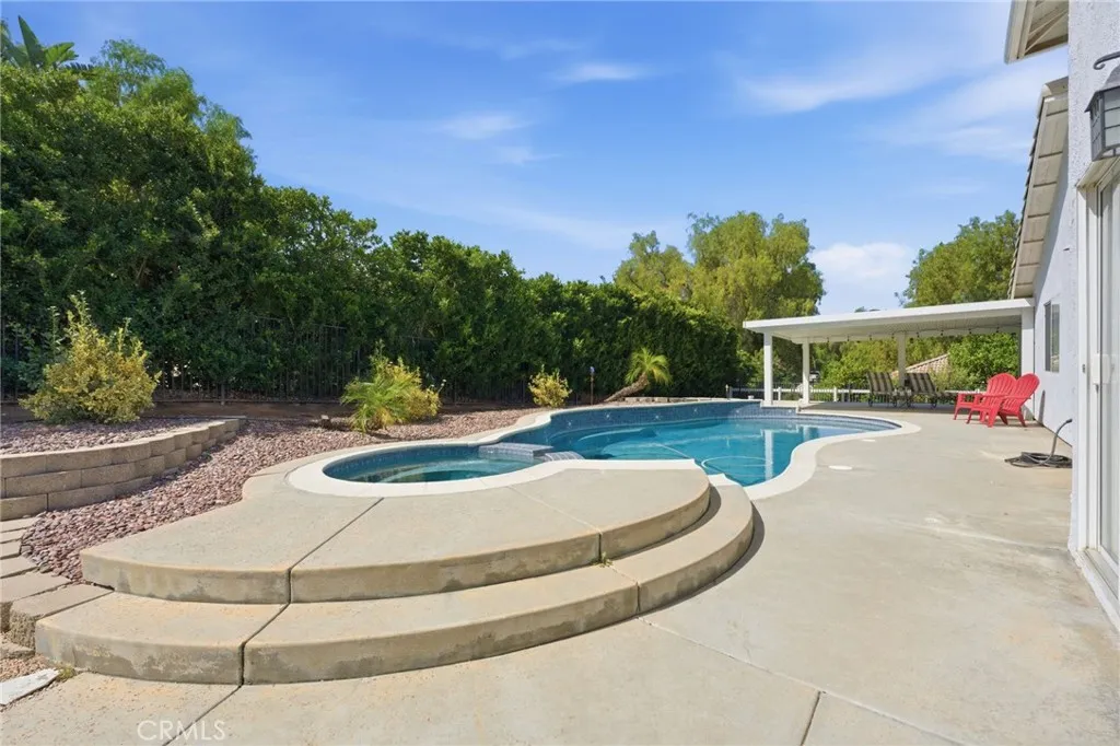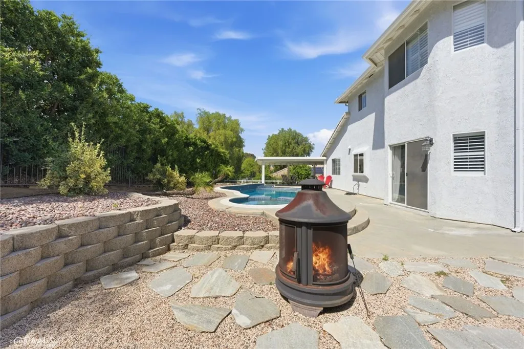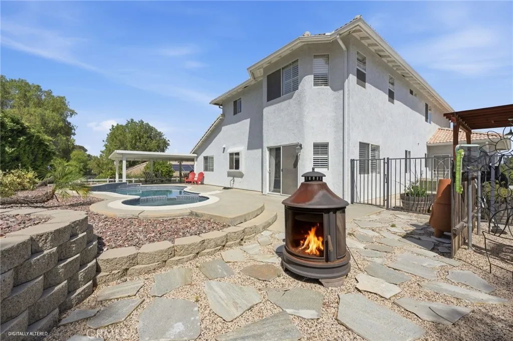 Quiet and Serene location of Canyon Ridge. This Rock Place, pool home is the ultimate idea of living in quiet nature right outside of the city limits. Enjoy the breezes in the evening, the lack of noise and traffic watching only the stars at night. This is a 4 bedroom 2.5 bath home with an upstairs loft area, Primary bedroom with a large primary bath that was recently upgraded with a walk in shower. Total of 4 bedrooms upstairs with an office downstairs (possible 5th bedroom), family room is adjacent and open to the kitchen area. Dining room area which opens to a dual sided fireplace and living room. This home has wood planked tile flooring and new carpet upstairs. So many comfortable and modern touches which include a beautiful stairway and banister. The exterior has plenty of grass and yard for kids to play in the front and the rear of the home with an extra large alumawood patio cover that looks over the lovely salt water pool with spa.