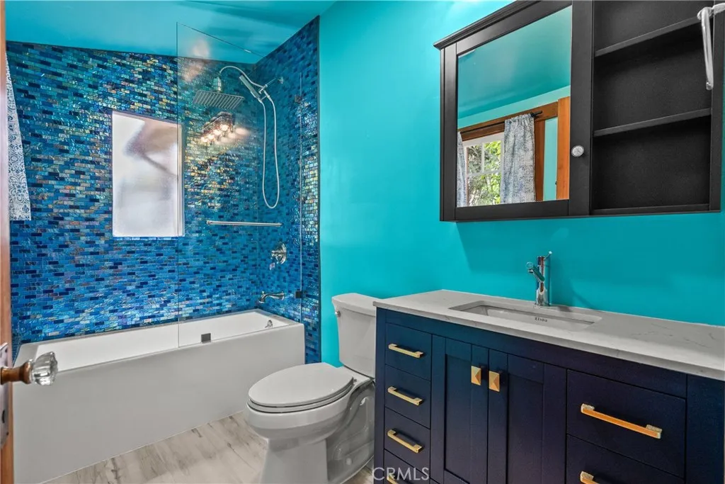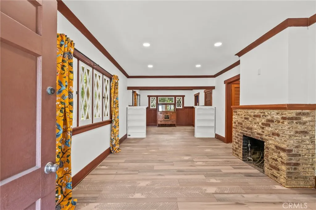 Nestled in the highly sought-after Bungalow Heaven Landmark District, this beautifully restored 1912 Craftsman bungalow by Vernon O. Whitcomb blends timeless character with extensive modern upgrades. A contributing historic property, it offers two bedrooms, two bathrooms, with 1,132 sq feet plus a detached studio of 441 sq ft, totaling 1,573 square feet, all on a generous, flat 10,113 square foot lot. A welcoming front porch opens to a living room with a brick fireplace and classic bookcase partitions leading to the dining room, highlighted by original Douglas Fir wainscoting. Major system upgrades include a reinforced sister wall foundation, full rewiring with upgraded panels for the home and garage, new attic insulation, termite fumigation, and a leak detection system. Plumbing improvements include updated kitchen water lines, new copper piping, new angle stops, a new dryer vent, replaced corroded copper, and a tankless water heater. The interior blends charm and modern style with new vinyl plank flooring (original hardwood remains underneath), recessed lighting, and fresh paint throughout. The remodeled kitchen features custom cabinetry, quartz countertops, and new stainless appliances. The primary suite offers a shower/bath with custom tile, new vanity, and updated fixtures. The backyard is a private retreat with a deck, built-in spa, lawn, and mature fruit trees and oaks. The detached studio offers approximately 441 square feet with its own HVAC, skylights, and French doors, presenting excellent ADU potential. A rare opportunity to own a turnkey historic home in one of Pasadena’s most beloved neighborhoods, with potential Mills Act benefits.