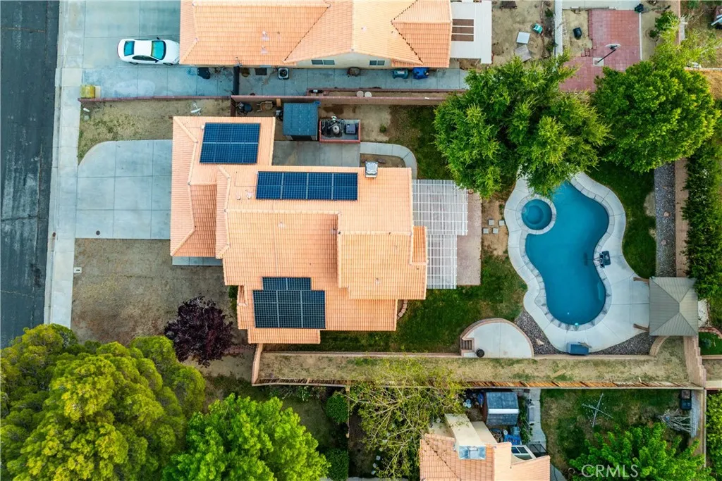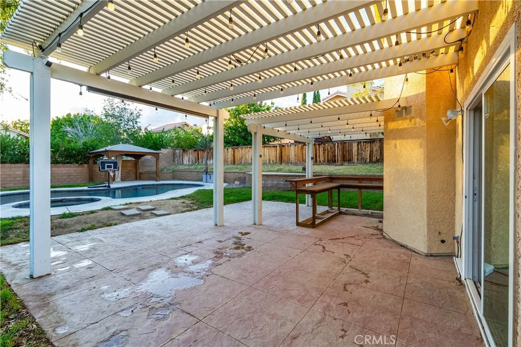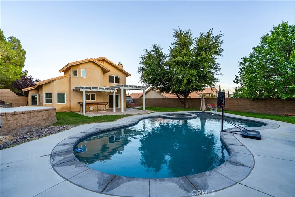 ***LIVE BEAUTIFULLY*** Welcome to this upgraded Rosamond two-story home w/ a pool & spa and a 3 car garage! Step inside to a grand entryway featuring soaring ceilings and a stunning chandelier, leading into a spacious formal living room with vaulted ceilings and an abundance of natural light. The family room offers a cozy fireplace, direct backyard access, and opens to the remodeled kitchen, creating an ideal space for everyday living and entertaining. The kitchen showcases quartz countertops, stainless steel appliances, a large center island, tray ceilings, and recessed lighting. Adjacent is a separate dining area with vaulted ceilings, modern chandelier lighting, and beautiful backyard views. Downstairs includes a full bedroom and bathroom, perfect for guests or multi-generational living, along with a laundry room featuring an upgraded barn door. Upstairs, the expansive primary suite offers a walk-in closet and a private bathroom with dual vanities, a large soaking tub, and a walk-in shower. Two additional bedrooms and another full bathroom complete the upper level. The backyard is an entertainer’s dream with a sparkling pool and spa, a cabana-style gazebo with lighting, a covered patio, and a spacious grassy area. Pool, spa, 3 car garage, and upgraded indoor and outdoor living make this home a standout!