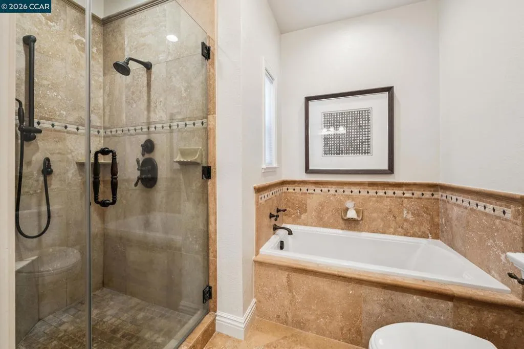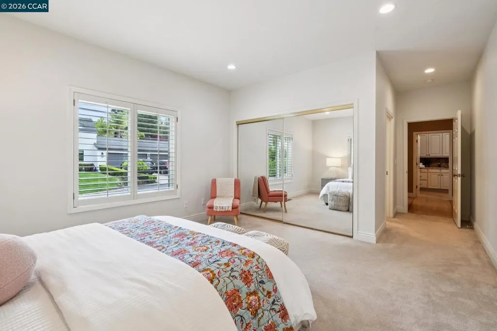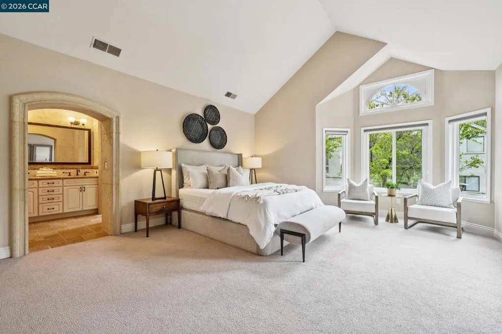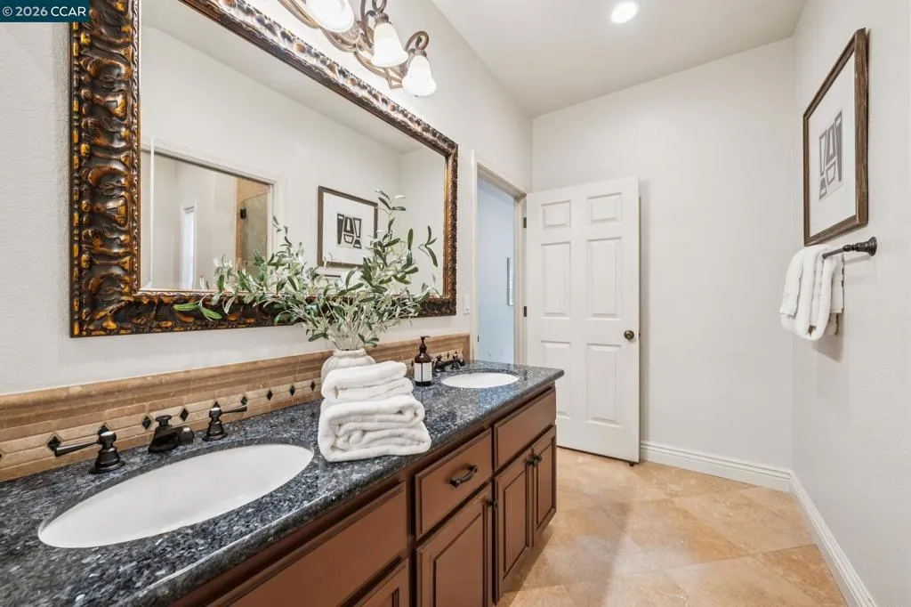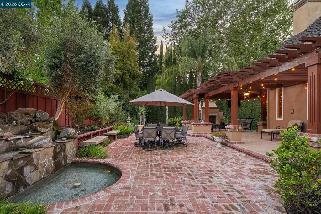 Prepare to be captivated by this distinguished Blackhawk estate. Grand entrance welcomes you w/ soaring vaulted ceilings, creating an embrace of luxury as you step into the home. The heart of the home, a gourmet kitchen, showcases exquisite granite & marble counters, a professional Viking 6-burner cooktop & dual ovens, Sub-Zero refrigerator & a butler's pantry for seamless entertaining. Architectural details abound, w/ striking beams & intricate millwork enhancing the home's character. Enjoy gatherings in the formal dining & living rooms with views from every window. The extra-large mudroom/laundry room offers practical convenience. Formal first-floor office, featuring French doors to a charming front patio, provides a refined workspace w/ a lovely view.The first-floor also offers versatility w/ an expansive guest suite, and a large Jack-and-Jill bathroom connecting two bedrooms. Upstairs, discover a serene primary suite, an elegant updated high-end custom bathroom. The enchanting backyard is an oasis for relaxation & entertainment, boasting a fireplace, multiple sitting & dining areas nestled within lush landscaping. Adding a touch of unique charm, a personal vineyard graces the property. This exceptional home offers a lifestyle that blends refined living w/ joyful moments.