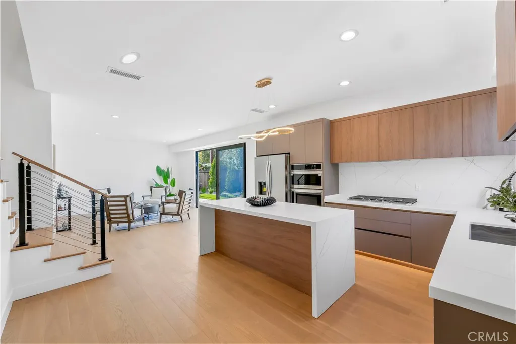 Welcome to 853 Oak St, a newly completed 2026 contemporary residence in the heart of Costa Mesa, offering a rare opportunity to own a thoughtfully designed and highly upgraded property complete with a detached ADU. The main residence showcases four bedrooms and five bathrooms, with each bedroom featuring its own en suite, providing the ultimate level of privacy and comfort. As you step inside, you are immediately greeted by soaring 20 foot ceilings and expansive windows that flood the home with natural light. The open concept layout creates a seamless flow between the living, dining, and kitchen spaces, ideal for both everyday living and entertaining. White oak vinyl flooring runs throughout the home. The chef’s kitchen is equipped with state of the art appliances, custom cabinetry, and quartz countertops, along with a butler’s pantry and a secondary prep kitchen, perfect for hosting gatherings or larger scale entertaining. The main level also features a private downstairs bedroom with custom built ins and its own en suite, as well as a stylish powder bath for guests. Upstairs, a striking floating staircase leads to a versatile loft filled with natural light, offering the perfect space for a home office or additional living area. The primary suite is a true retreat, highlighted by 10 foot ceilings, custom cabinetry, and a spa inspired bathroom with dual vanities, a soaking tub, and an oversized walk in shower with three showerheads. Two additional bedrooms, each with en suite baths and custom closets, along with a conveniently located laundry room, complete the second level. Adding exceptional value to the property is the brand new attached ADU, thoughtfully designed with its own private living space. The ADU features two bedrooms and two and a half bathrooms, with all bedrooms located upstairs, as well as an in unit laundry area. The kitchen is finished with quartz countertops and state of the art appliances, offering a modern and functional living environment ideal for extended family, guests, or rental income. The backyard is designed for low maintenance living, featuring a clean patio space and artificial grass, creating an ideal setting for outdoor enjoyment. A spacious three car garage provides ample parking and storage. This is a rare opportunity to own brand new construction with a versatile ADU, modern design, and exceptional functionality, all in one of Costa Mesa’s most desirable locations.