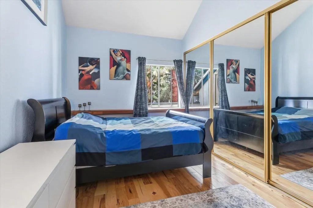 Updated second-floor condo in the gated Summerton community features vaulted ceilings and peaceful pond views from a private patio. The open-concept layout connects the living and dining areas to a kitchen with butcher block wood countertops, a breakfast bar, and in-unit washer and dryer. Engineered hardwood flooring runs throughout. The primary bedroom includes an oversized closet and a dedicated office nook. Central heating and air conditioning. Water heater replaced in 2025. Community amenities include a pool, spa, tennis courts, and landscaped grounds with pond and water features. Two parking spaces included, one covered. Easy access to Highways 101, 880, and 680, and minutes from Downtown San Jose, Little Saigon, and Plant Shopping Center. Schools to be verified by buyer.