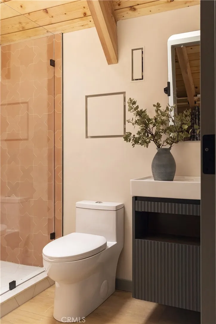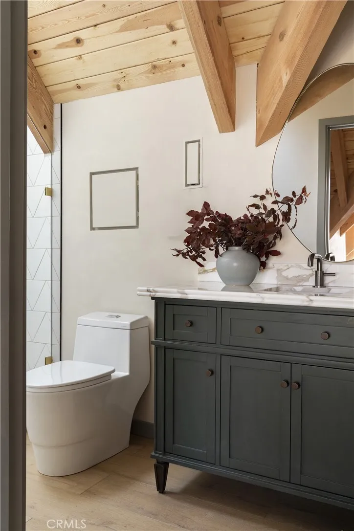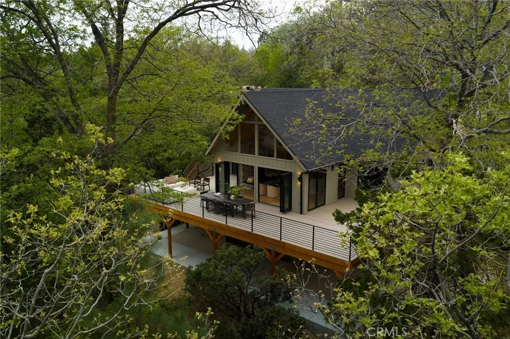 Spoonbill by Custom Nests, Elevated Lake Living with Lake Rights. Set against expansive lake views and nearly 180 degrees of surrounding forest, Spoonbill is a design forward retreat with a rare sense of privacy and space. With no neighbor to the right and a stunning prow featuring expansive windows, the home is filled with natural light and frames the lake from nearly every angle, while still feeling tucked into the trees. Bifold doors open to a brand new, expansive Trex deck, creating easy indoor/outdoor living. The home has been extensively upgraded with a brand new roof, all new HVAC and ducting, and new decking throughout. A new 2 car garage is currently under construction, with ample parking overall. Inside, every bedroom has its own en-suite, making the layout feel comfortable and private throughout. The kitchen is finished with Calacatta Borghini marble, and the powder room features Patagonia quartzite. Throughout the home, you’ll find Roman clay walls, designer wallpaper, and a well curated mix of lighting and furnishings from Palecek, Fourhands, Lulu & Georgia, and Harbour Outdoor throughout. Custom details include an antique Moroccan door in the powder room, repurposed original floating shelves, and preserved fireplaces. Bathrooms are finished with WOW and Zia tile, complemented by Cali Flooring throughout. The home also features custom bunk beds and Nectar and Saatva mattresses, making it feel fully dialed and turnkey. Ample parking for up to 5 vehicles, including the soon to be completed garage. Offered with lake rights, this is a fully reimagined, design forward home in one of the most beautiful settings on the mountain.