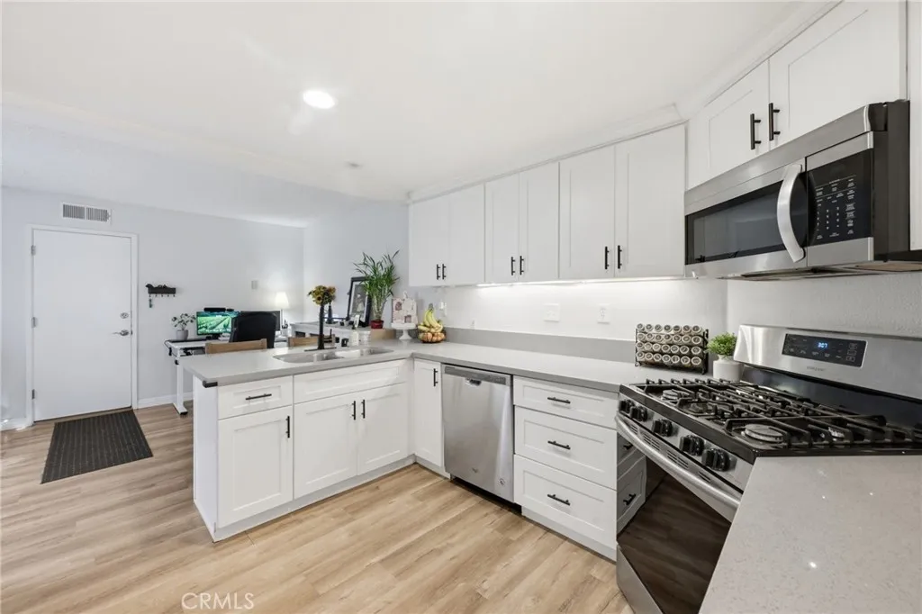 Marlborough Villas, Spanish-style villas in heart of Rancho Cucamonga, where you are surrounded by new restaurants, walkable coffee shops, trendy shopping centers in a safe and warm location! Enjoy the tree-lined streets, sidewalks, mountain views and green belts! Multiple swimming pools, tennis courts and a dog park! This unit offers 3 bedrooms, 2 1/2 bathrooms, with upgraded Quartz countertops throughout! The wood laminate flooring offers a durable, modern look while the fireplace and dining area provide for areas to relax and gather. The cozy front courtyard provides a neighborhood view with lush trees, and no neighbors across from you! The back patio area allows you to kick your feet up, tend to your planting and relaxation. The 2 car garage provides enough room for parking and storage.