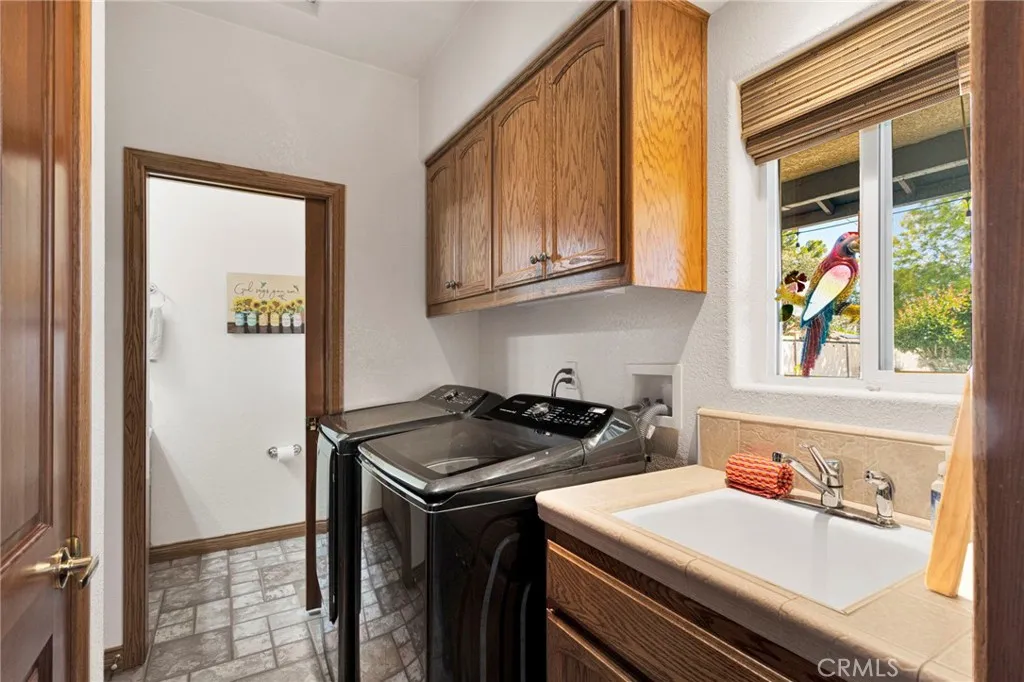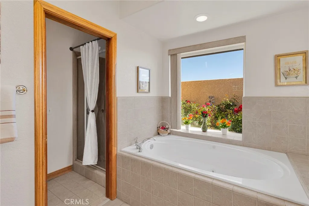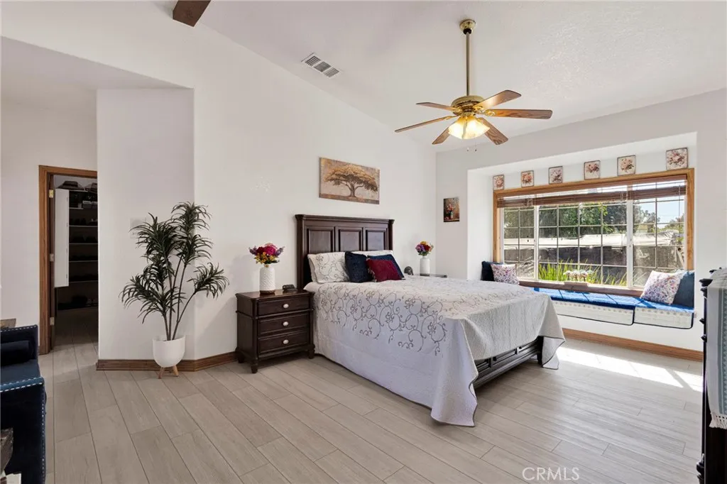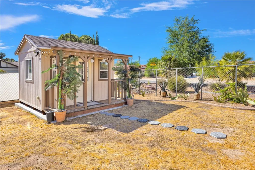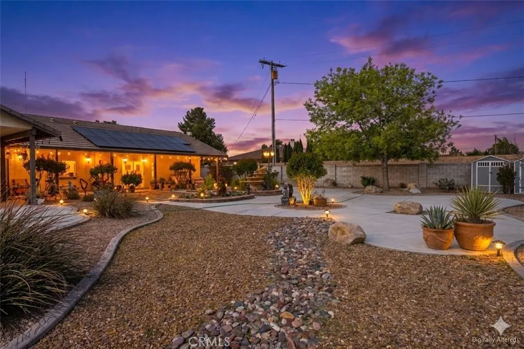 Just minutes from Apple Valley Golf Course and sitting on over half an acre, this custom home has the space, the setup, and the backyard to back it up. Out back, the evenings are something special. A firepit, fountain with its own dedicated electrical line, stamped concrete, and party lighting on a direct electrical line make this a backyard you'll use year-round, with true privacy and room to breathe. The extended patio is gas-ready for BBQs and plenty of space to entertain. The backyard also features its own upgraded electrical panel. Inside, high ceilings and skylights keep things bright and open. The home offers both central AC and an evaporative cooler, giving you flexibility on how you cool the house through those hot desert months. The kitchen has granite countertops, a pantry, and counter and cabinet space you'll actually appreciate. The primary bedroom is large and comfortable with a walk-in closet, a bay window with built-in storage, French doors that spill right out to the backyard, and a bathroom with a jacuzzi tub and generous counter space. Intercoms throughout the home and two alarm systems add convenience and peace of mind. There's also a finished, climate-controlled bonus space out back with its own dedicated electrical panel, mini-split, smart plugs, and phone-controlled lighting. Perfect for guests, a home office, or a craft room. RV access, a 3-car garage with attic storage, double-pane windows, two upgraded electrical panels, and a lot large enough to potentially add an ADU round out this one. Come see it in person - the backyard alone is worth the trip.