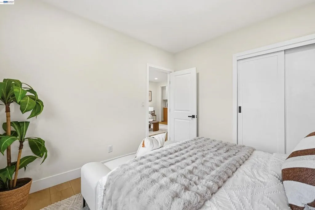 Best value in Bay Farm Alameda! A must-see opportunity featuring a huge flat lot with endless potential, complemented by a detached garage, ideal for expansion or ADU (buyer to verify). This thoughtfully renovated home offers a bright, open layout with abundant natural light and seamless flow between living, dining, and kitchen areas. The designer kitchen features sleek cabinetry, quartz countertops, stylish backsplash, and stainless steel appliances. Interior highlights include recessed LED lighting and curated design details throughout, including a striking wood slat accent wall and custom built-ins. The bathroom features modern vanities, illuminated mirrors, and contemporary finishes. Exterior upgrades include refreshed landscaping and an improved front yard, enhancing curb appeal and overall functionality. Located in the highly regarded Alameda Unified School District, Bay Farm Island offers parks, greenbelts, and the Chuck Corica Golf Complex, with easy access to highways, public transit, and the Harbor Bay Ferry to San Francisco. No HOA. Don’t miss this opportunity!