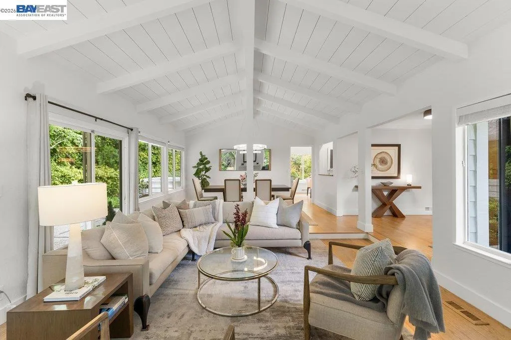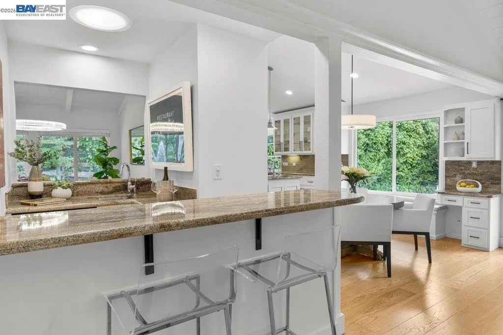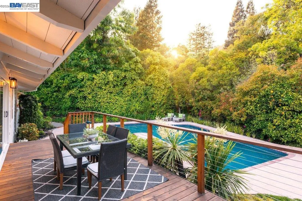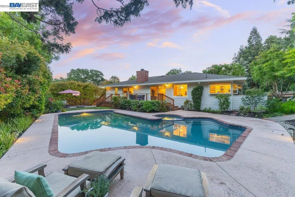 Welcome to one of Westside Alamo's most charming completely remodeled single-story properties — a true oasis where privacy, beauty, and effortless living come together in perfect harmony. Boasting 4 bedrooms and 2.5 bathrooms and 2593 sq ft situated on a sprawling .46 acre flat lot. Tucked behind a private tree-lined drive, this spectacular property sets the stage from the moment you arrive. Inside, soaring open beam ceilings and wide plank oak hardwood floors create a warm, sophisticated atmosphere. The chef's kitchen is a showstopper — Sub-Zero refrigerator, Décor double ovens, 6-burner cooktop, large island with veggie sink, glass-front cabinets, and granite countertops. The kitchen opens up to the private and picturesque backyard. A walk-in wet bar with wine fridge, two fireplaces, and expansive living and dining rooms make this home an entertainer's dream. Step outside to a resort-style backyard unlike any other — sparkling newly remodeled pebble finish pool and spa, sport court, large patio, raised decking, separate side yard seating perfect to enjoy your morning coffee, and mature foliage that creates a Zen-like park setting. Additional features include new luxurious primary bathroom with quartz counters, soaking tub, and custom mirrors, remodeled hall bath, oversized finished garage, spacious laundry room with cabinetry, and moments from the Iron Horse Trail. Quiet. Serene. Peaceful. This is the one you've been waiting for.