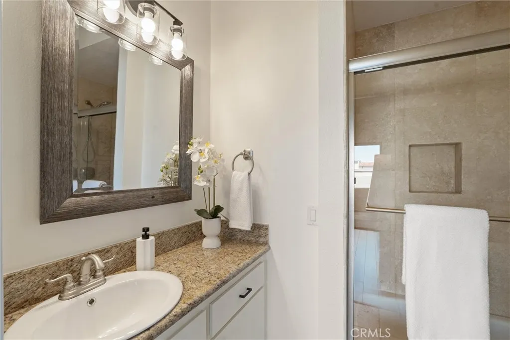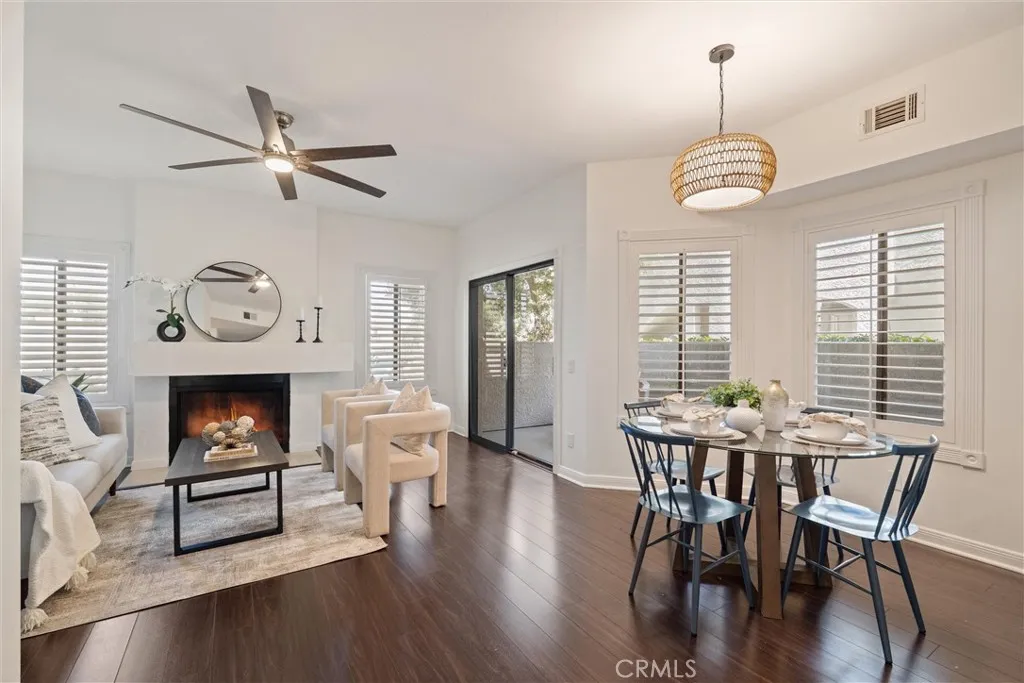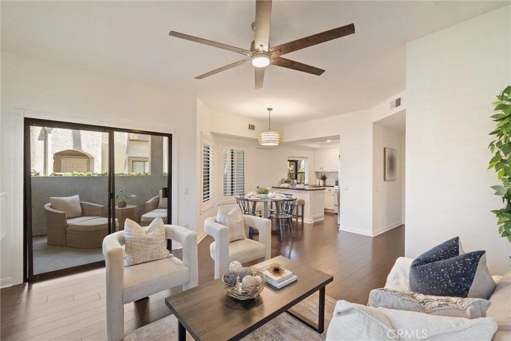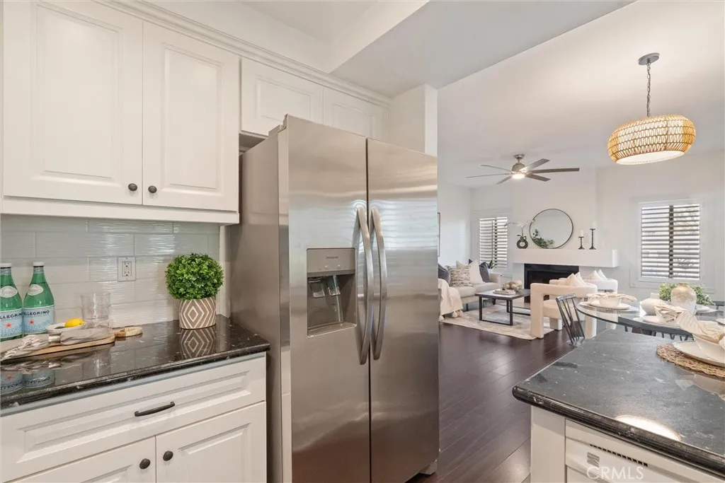 Located in the sought-after Tiara de la Pacifica community, this beautifully maintained downstairs 2-bedroom, 2-bath condo offers an inviting open floor plan filled with natural light, creating a warm and comfortable space that feels like home from the moment you walk in. Plantation shutters and laminate wood-style flooring add a clean, cohesive look, while the spacious living room with a cozy gas fireplace provides the perfect setting for relaxing evenings or easy entertaining with friends and family. The remodeled kitchen features timeless white shaker cabinetry, granite countertops, and a stylish white tile backsplash, designed to make both everyday meals and casual gatherings feel effortless and enjoyable. Two large private patios extend your living space outdoors, offering versatile areas for morning coffee, dining al fresco, container gardening, or creating a peaceful retreat to unwind at the end of the day. Dual primary suites provide flexibility and privacy, ideal for guests, shared living, or a comfortable work-from-home setup. The main ensuite includes dual sinks and a walk-in closet, making daily routines feel more spacious and organized. This home is truly move-in ready with fresh paint and offers the everyday conveniences buyers are looking for, including inside washer and dryer hookups and a private 1-car garage plus an additional reserved parking space nearby, making daily living simple and stress-free. The gated community is well maintained with high HOA standards, giving residents a sense of pride and peace of mind, along with access to resort-style amenities including a recently renovated pool, clubhouse, BBQ area, and ping pong—perfect for relaxing weekends or connecting with neighbors. Ideally located within an easy walk to the Bolsa Chica Wetlands and just minutes from the beaches, Huntington Harbour, and Huntington Harbour Mall with Trader Joe’s, dining, and shopping, this home offers the perfect balance of convenience, comfort, and coastal lifestyle.