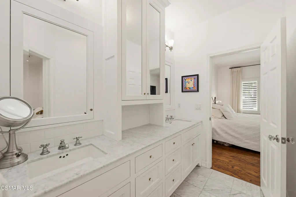 Tucked within a beautifully maintained building in one of Santa Monica's most desirable neighborhoods, north of Wilshire Blvd, this bright and private corner unit two bedroom, single-level condo offers an exceptional blend of indoor-outdoor living and walkable Westside convenience. A standout feature are the two expansive private patio spaces--among the largest offered in the area-- creating a rare extension of the home perfect for entertaining, dining al fresco, morning coffee, or simply enjoying the coastal breeze. Inside, the thoughtfully designed open floorplan is filled with natural light and features warm wood floors, fresh paint, recessed lighting, built-in cabinetry, and seamless flow between the spacious living room, dining area, and kitchen. The inviting living room is anchored by a cozy gas fireplace, while the kitchen offers timeless style with white cabinetry, granite countertops, and newer appliances, including a gas range, microwave, dishwasher, and refrigerator, plus a sunny eat-in area. The primary suite includes an updated ensuite bathroom with dual vanity & marble countertops, a large tub and separate shower with marble & subway tile surround, and a walk-in closet, while the second bedroom and bathroom offer flexibility for guests, office space, or family living. Features include central HVAC, recessed lighting, plantation shutters, crown molding, inside laundry & freshly painted exterior. Additional conveniences include two side by side parking spaces in the community garage with direct elevator access to the unit floor--no stairs required, as well as a personal storage area. Located just moments from the boutiques and dining along trendy Montana Avenue, the Farmers Market, Third Street Promenade & the iconic Santa Monica Pier, and only 8 blocks to Palisades Park and the beach, this home presents a rare opportunity to enjoy privacy, oversized outdoor space, and the best of Santa Monica living.