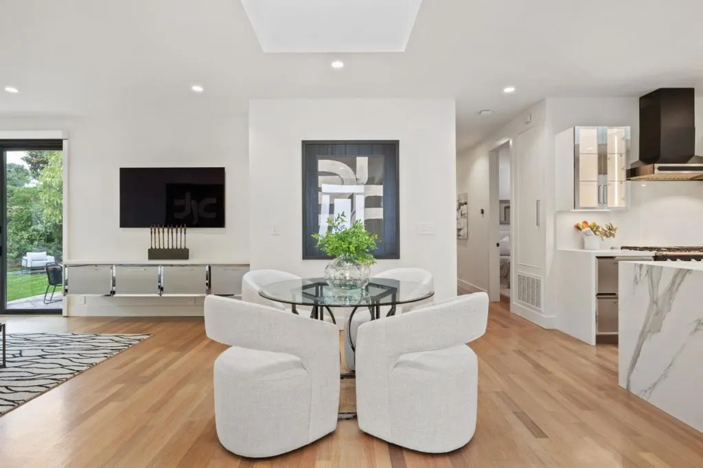 This sophisticated modern farmhouse represents a rare fusion of classic architecture and 2026 state-of-the-art construction. Extensively remodeled with city permits, the home exceeds typical renovation standards, offering an effective age of 1996 paired with the pristine quality of a brand-new estate. The interior is a masterclass in design, featuring level 5 smooth drywall, soaring ceilings, and bleached cherry hardwood flooring. A stately entry with transom glass leads to a living room anchored by a modern linear fireplace, while the chefs kitchen shines with a La Cornue range and paneled Sub-Zero and Miele appliances. The open-concept family room dissolves the boundary between indoors and out via a premium folding door system, leading to a lush yard boasting a private orchard of pomegranate, loquat, plum, and citrus trees. Practicality meets luxury with a private fourth bedroom situated like a secondary suite and a primary retreat with a spa-caliber bath. For the enthusiast, the oversized garage serves as a premier workshop with ample power and dedicated EV charging. Every detail of this turnkey residence has been curated for the buyer who demands high-end craftsmanship and architectural integrity in a premier North Los Altos location.Top schools: Almond, Egan, Los Altos High