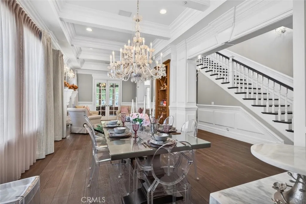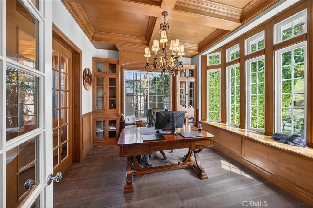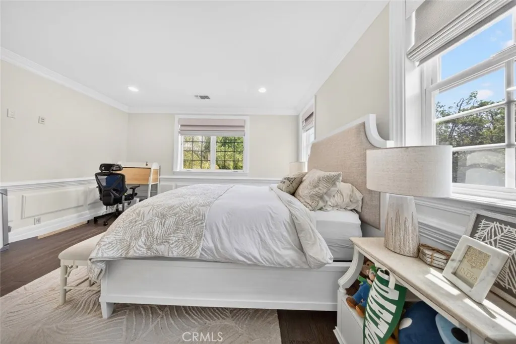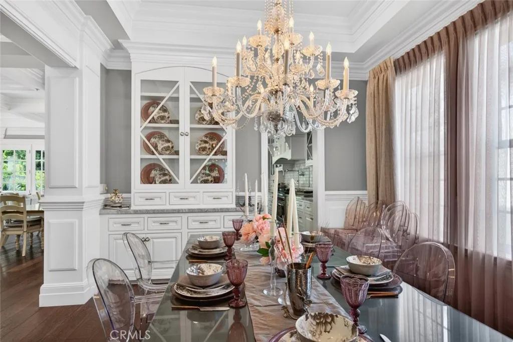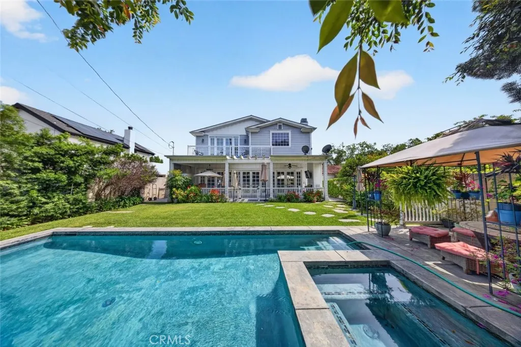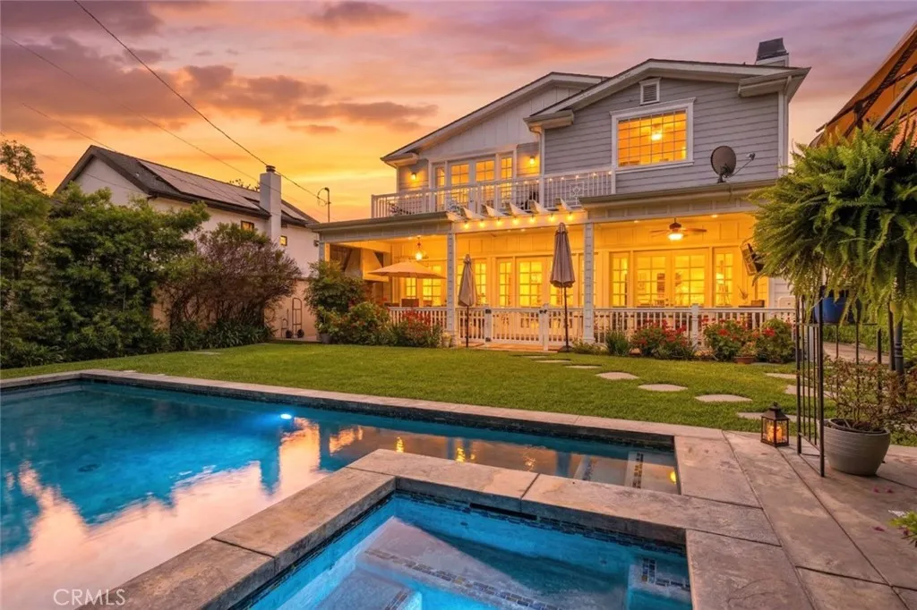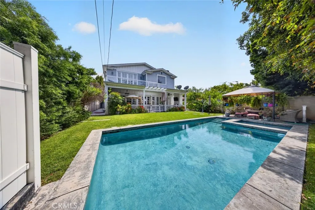 Experience elevated living in this stunning two-story residence located in the heart of North Hollywood. Built in 2014, this expansive 5 bedroom, 5.5 bathroom home offers approximately 3,821 square feet of beautifully designed living space, blending elegance, comfort, and functionality. Inside, soaring ceilings, intricate coffered details, rich wood flooring, and an abundance of natural light create a bright and inviting atmosphere throughout. The open concept layout features multiple living and dining areas, ideal for both everyday living and entertaining. The chef's kitchen serves as the centerpiece of the home, complete with a large center island, high end appliances, custom cabinetry, and seamless flow into the main living spaces. Detailed staircase lead up to the second floor with high vaulted ceilings & large bedrooms. The luxurious primary suite offers a cozy fireplace, a custom designed walk in closet, and a private balcony, complemented by a spa inspired bathroom featuring dual vanities, a soaking tub, and an oversized walk-in shower. French doors open to a private backyard retreat designed for both relaxation and entertaining, featuring a sparkling pool and spa, lush landscaping, and a covered patio with a fireplace and built in BBQ, perfect for outdoor dining and lounging. No detail was overlooked in this immaculate home, thoughtfully designed with exceptional craftsmanship, high end finishes, and a seamless blend of comfort and sophistication throughout. Additional highlights include an attached 2 car garage, dedicated laundry room, and ample storage throughout. Ideally located near shopping, dining, and major studios, this exceptional lease opportunity offers both convenience and upscale living in one of North Hollywood's most desirable neighborhoods. This property is fully furnished with stylish furniture and essential amenities, offering a comfortable and move in ready living experience. Welcome Home!