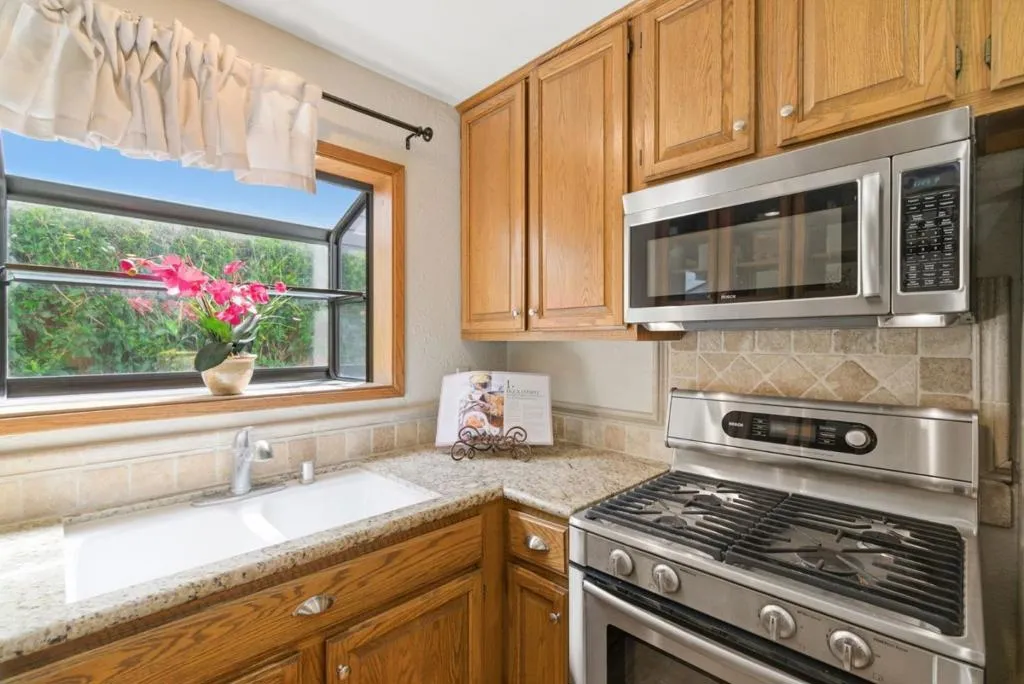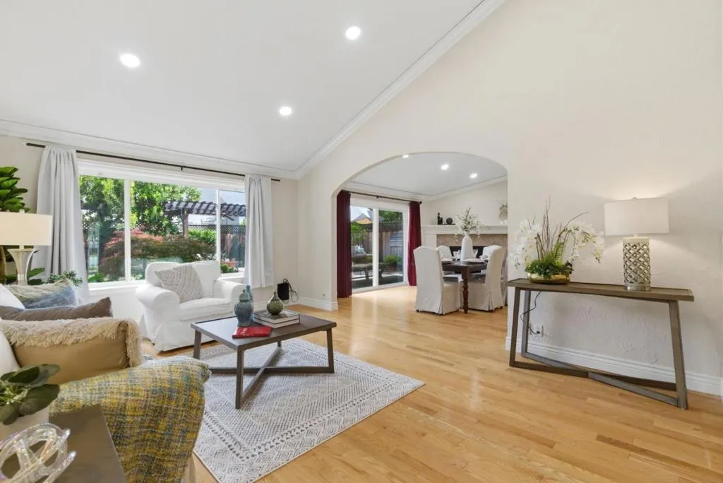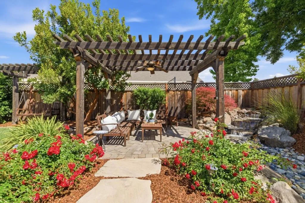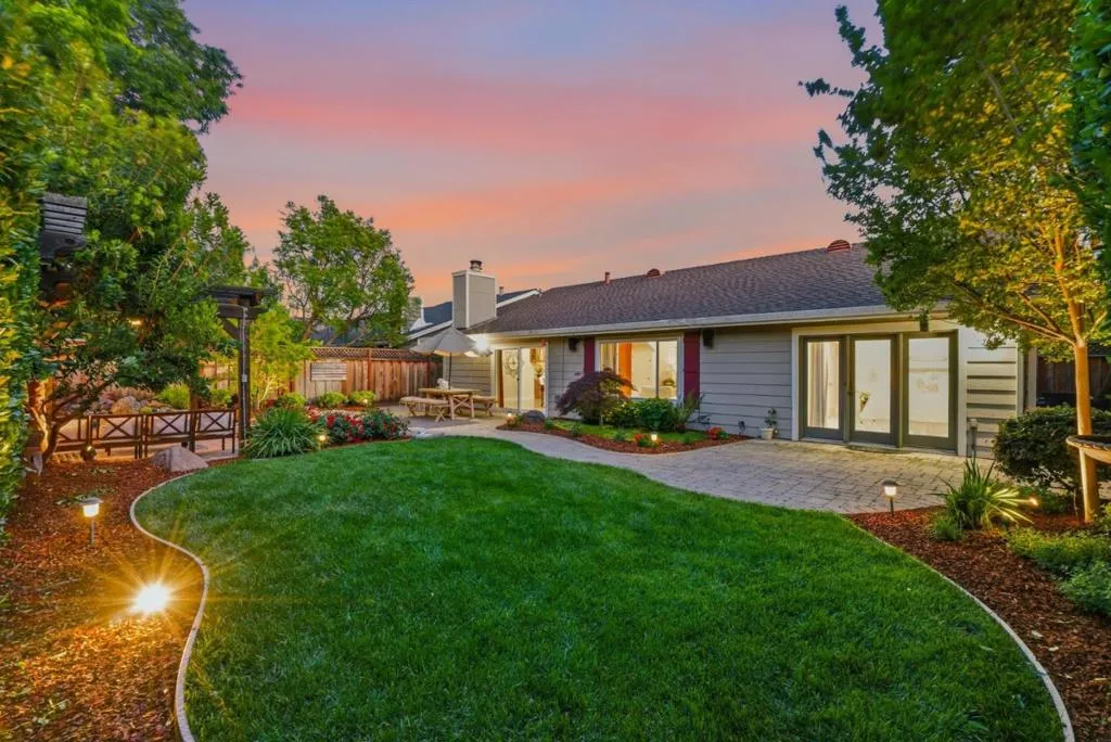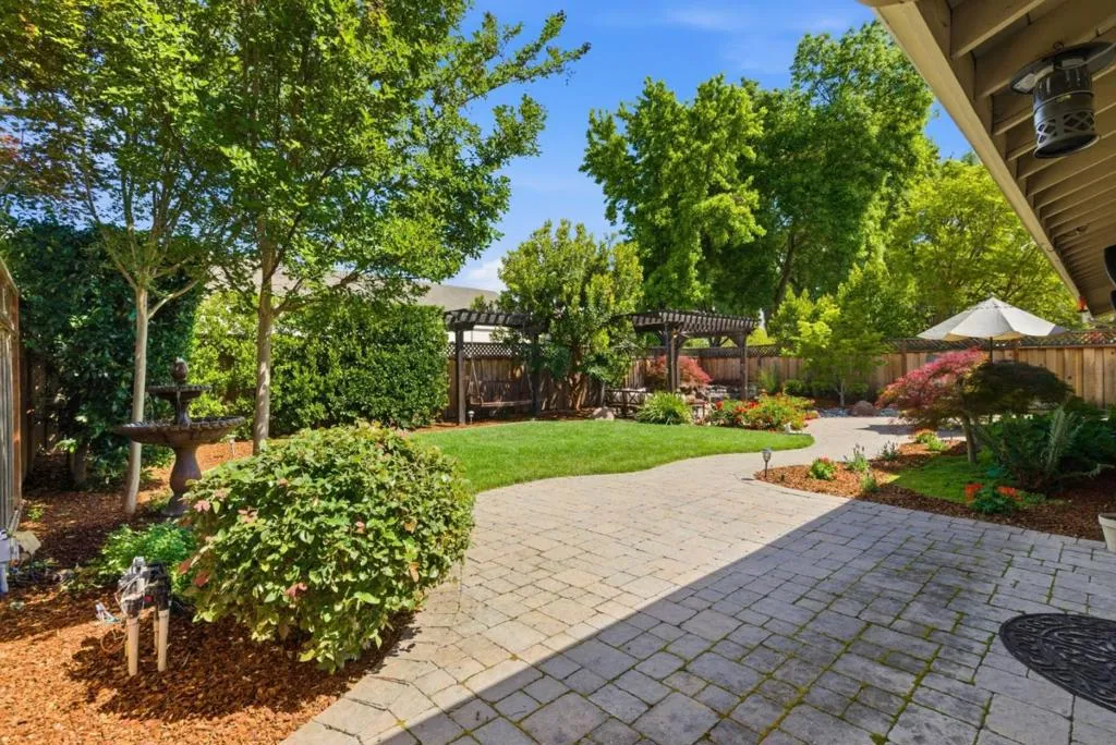 Welcome to this beautifully maintained 3 bedroom, 2 bath home in a sought-after Gilroy neighborhood, offering a perfect blend of comfort and inviting outdoor living. Lush landscaping, blooming gardens and tranquil fountains create a peaceful backyard retreat, complemented by paver patios and a pergola, ideal for relaxing and entertaining. Inside, soaring ceilings in both the living and family rooms provide a bright, open feel. The home features fresh interior paint, newly installed recessed lighting and an updated kitchen with granite countertops and stainless steel appliances. The spacious primary suite with high ceilings includes French doors that open directly to the backyard, offering seamless indoor-outdoor living. Ideal location near golf courses, wineries, parks, local schools and shopping, this home combines a serene setting with everyday accessibility. A rare opportunity to enjoy the best of Gilroy living.