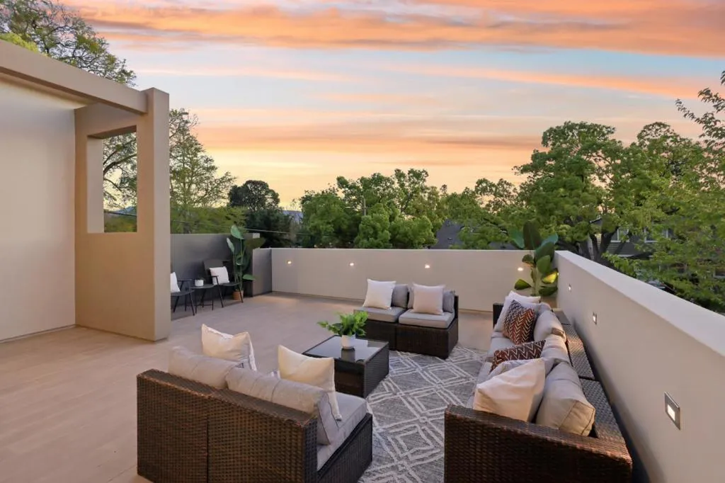 Welcome to this contemporary home built in 2020, on a picturesque tree-lined street in one of Willow Glens most coveted neighborhoods. Offering 4 beds + office & 3.5 baths on an expansive 8,238 sq ft corner lot. This home combines modern design w/ exceptional livability featuring one of the grandest entries in Silicon Valley, highlighted by dramatic cathedral ceilings that create an immediate sense of scale & elegance. High ceilings extend throughout, including rare 10 ft ceilings upstairs, enhancing the open & airy feel. The living areas are framed by a modern staircase & walls of windows that flood the space w/natural light. Thoughtfully designed w/ high-end finishes: wood flooring, custom wall textures,Hunter Douglas coverings,Toto fixtures,& custom organizers. The chefs kitchen is equipped w/ Sub-Zero & Miele appliances, waterfall island,& walk-in pantry. The family room opens to a low-maintenance yard through expansive doors, creating seamless indoor-outdoor living. Downstairs includes an en-suite bedroom & office. Primary suite offers a spa-like bath,& private balcony, while secondary bedrooms are spacious & filled w/ natural light. A rooftop terrace provides a peaceful retreat. Ideally located just minutes from downtown WG, parks, schools, dining, & major tech employers.