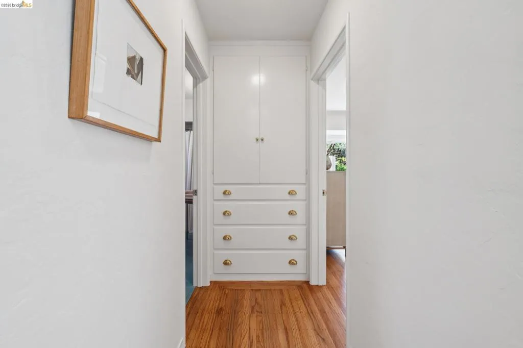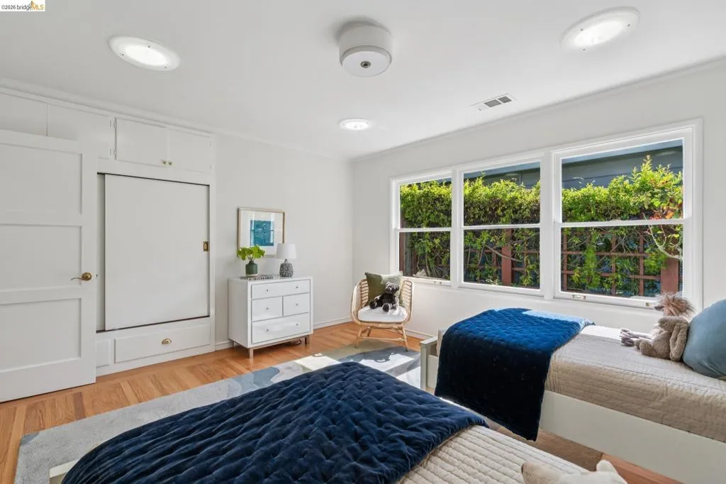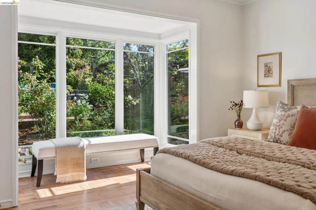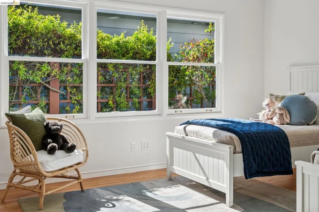 This enchanting El Cerrito garden cottage, nestled in the sought-after Fat Apple’s neighborhood, offers a whimsical retreat close to everything. Community amenities under a mile away include El Cerrito BART, Colusa Circle and Sunday farmers’ market, Cerrito Vista Park, and the Community & Swimming Center, to name just a few. From the sidewalk, you enter the garden through a wooden gate, and immediately you’re greeted by rambling soft yellow roses and flowering wisteria vines. The covered porch provides a peaceful transition from the street into the tranquil home. Windows with views to the garden can be found in every room. The gracious living room and dining room are generously sized to comfortably gather with friends and family. A sweet vintage-tiled kitchen has direct access to the back porch and meandering garden. Two light-filled bedrooms down the hallway and charming original tiles in the bathroom add to the enchanting character of the home. The primary bedroom has a large garden window connecting the room to the idyllic backyard. Just through the kitchen door on your way to the garden, you can’t miss the detached garden cottage, with 2 window-filled walls and a fireplace; it’s the perfect spot for art or play, come rain or shine. This bonus space invites your imagination.