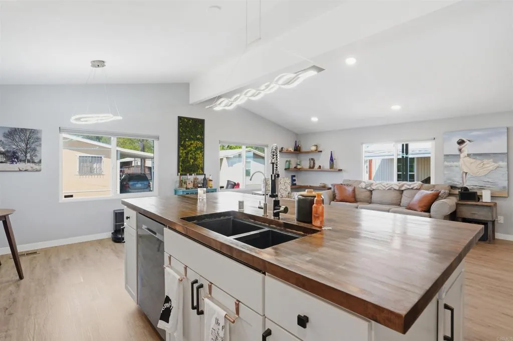 Welcome to Rancho Del Rio Estates #53—an elegantly updated and move-in ready 3-bedroom, 2-bath manufactured home ideally situated on a desirable corner lot in a sought-after all-age community. This light-filled home features an inviting open floor plan with high ceilings, large custom dual-pane windows and beautiful easy-care luxury continuous vinyl plank flooring with tile in the bathrooms. Enjoy year-round comfort with central A/C and heat, complemented by custom top-down/bottom-up blackout blinds that create the perfect ambiance in every room. The spacious kitchen is designed for both everyday living and entertaining, offering ample counter space, gas cooking, abundant cabinetry, gas cooking, and a sleek smart stainless steel appliance package—including a wine cooler. All kitchen appliances, plus the water filtration system, are included. The home also offers a dedicated dining area, laundry room with washer and dryer included, a newer roof and thoughtful modern upgrades throughout that reflect pride of ownership. Step outside to a welcoming front porch, low-maintenance yard, patio for outside enjoyment and covered carport for exclusive parking convenience. Community amenities include a pool, playground, banquet room, and green spaces. This prime location is walking distance to Larsen Field Park/Sports Complex and Coral Gate Park, the world-famous Las Americas Outlet Center, restaurants, banks, public transit, and just minutes from grocery stores, the US/Mexico border and major freeways. Monthly space rent is $1,250. Schedule a personalized showing today—this home won’t last! Programa una visita personalizada hoy. Esta casa no va a durar mucho.