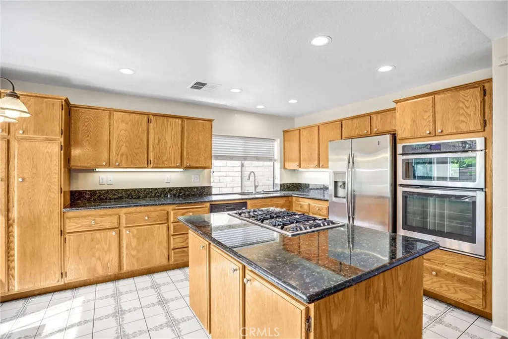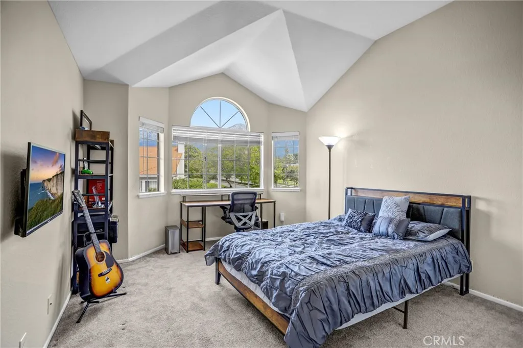 ETIWANDA SCHOOL DISTRICT! NO HOA! ONE BEDROOM DOWNSTAIRS! Rare opportunity to own a 2,369 sq ft home at the end of a quiet cul-de-sac, directly across from the elementary school—an ideal blend of comfort and convenience. Step into a light-filled living room with soaring ceilings and wood laminate flooring, flowing seamlessly into the formal dining area. The kitchen features granite countertops, a large island with 5-burner cooktop, and open access to the breakfast nook and inviting family room with fireplace. The main level also includes one bedroom and a full bathroom, offering excellent flexibility for guests or multi-generational living. Upstairs, the primary suite offers its own fireplace and a spacious en-suite with dual sinks, walk-in closet, soaking tub, and separate shower. Two additional bedrooms share a Jack-and-Jill bathroom. The oversized bonus room with mountain views is a true highlight—perfect for a game room, media space, home office, or potential 5th bedroom. Enjoy a low-maintenance backyard with an Alumawood covered patio, ideal for relaxing or entertaining. Additional upgrades include a tankless water heater and exterior security system. Located in the highly rated Etiwanda School District, close from parks, trails, shopping, and Victoria Gardens, with easy commuter access. No HOA. Homes in this location rarely come up—schedule your private showing today!
