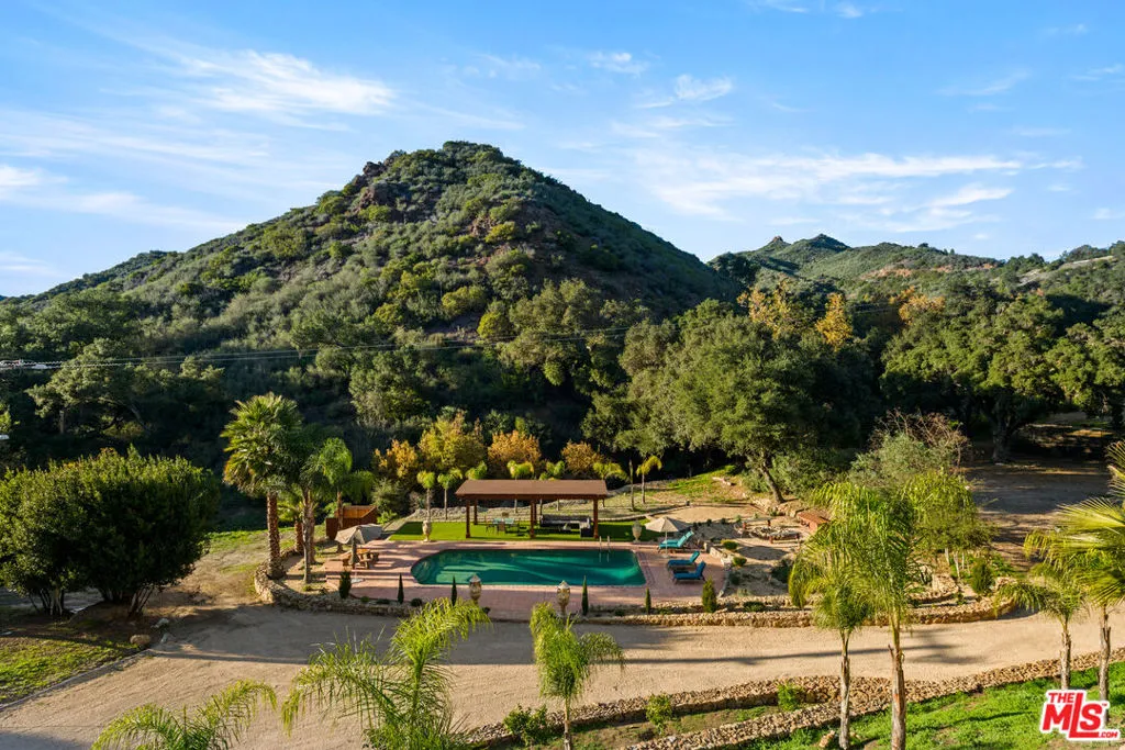 Bring your surfboards and saddles to this legacy ranch property situated in the heart of Malibu. Properties like this rarely come along, and this is your chance. Tucked behind gates in a coveted canyon setting, this extraordinary Spanish style residence offers approximately 4,186 sf, 4 bedrooms, and 4.5 bathrooms, set across 21 acres of pristine land. A stream runs through the property, creating a park like environment that feels worlds away, yet remains moments from Malibu's most iconic destinations. Recently renovated kitchens and bathrooms blend timeless architecture with modern comfort, while the home's thoughtful layout is ideal for both intimate living and larger scale entertaining. Expansive outdoor areas offer endless potential for recreation and relaxation. The setting delivers unparalleled privacy, natural beauty, and flexibility, all while being ideally located near Calamigos Ranch Resort and Spa, Point Dume, and Zuma Beach. This is a rare opportunity to experience a generational Malibu property where acreage, seclusion, and proximity to the coast converge in one remarkable offering.