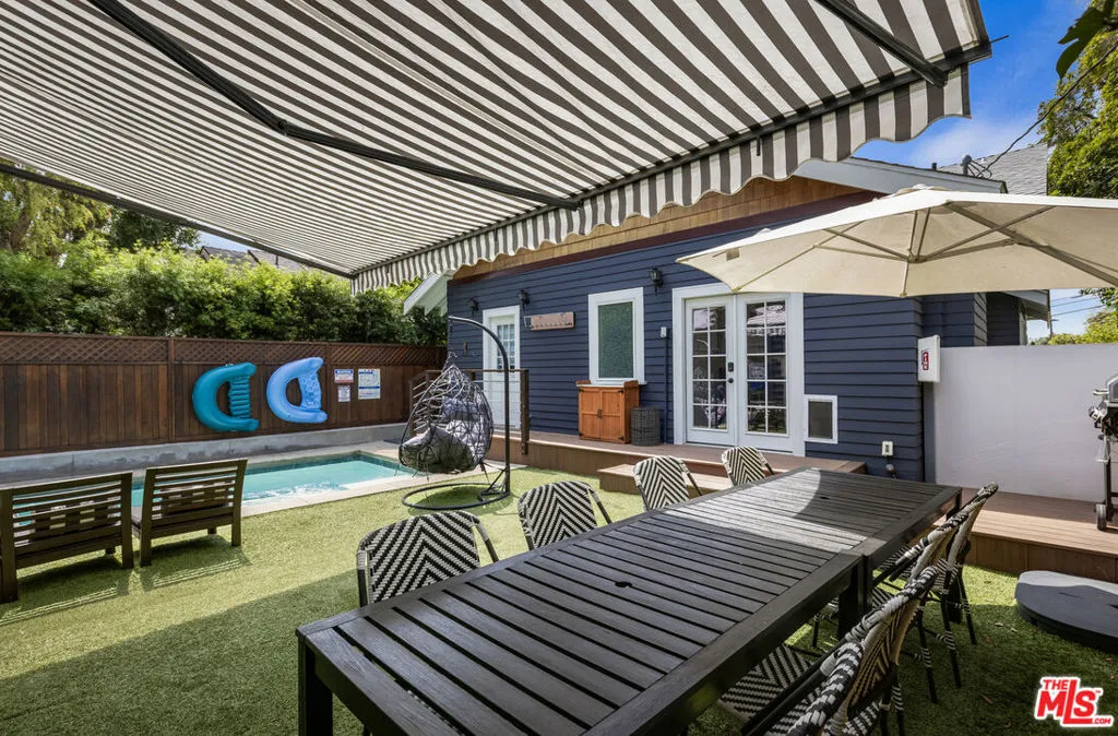 Set on a gentle knoll in the coveted enclave of Highland Park, this exquisitely restored 1906 Craftsman bungalow is a masterclass in timeless architecture reimagined for modern living. Enclosed by a classic Arroyo stone wall and enveloped in mature hedging, the property offers a rare sense of seclusion and serenity. Thoughtfully curated throughout, this residence features 3 bedrooms and 2 bathrooms, along with a flexible 4th room currently envisioned as a bespoke dressing room. Throughout the home, original architectural details - rich woodwork, gleaming hardwood floors, and meticulously restored windows - speak to its heritage, while refined updates introduce a quiet, contemporary sophistication. The formal living room, anchored by a decorative fireplace and flanked by custom built-ins, unfolds gracefully into an expansive dining room with original cabinetry, creating an elegant setting for both intimate gatherings and larger-scale entertaining. The chef's kitchen is both warm and highly functional, appointed with cork flooring, stainless steel appliances, and a dedicated laundry area, seamlessly integrating everyday convenience with considered design. Two spacious bathrooms offer a sense of sophistication and style, each appointed with dual vanities and curated finishes - one featuring a marble-clad shower and soaking tub, the other a beautifully executed standalone shower. Outdoors, the property reveals its most captivating feature: a private, resort-caliber retreat designed for effortless indoor-outdoor living. Lush, layered landscaping surrounds a saltwater pool and spa, complemented by multiple lounge and dining areas and a retractable awning for shaded afternoons. The setting is both tranquil and transportive, an ideal backdrop for entertaining or quiet relaxation beneath the Southern California sky. Additional amenities include central HVAC, a detached two-car garage (currently configured for one full-size vehicle), and driveway parking for two. Offered furnished or unfurnished and available immediately, this exceptional residence places you moments from Highland Park's most celebrated boutiques, cafs, and dining destinations, including Hippo, Highly Likely, Kitchen Mouse, Civil Coffee, Highland Park Bowl, and Triple Beam Pizza, with convenient access to the city beyond.