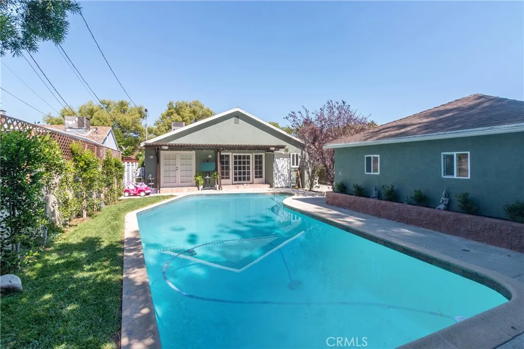 Nestled in Burbank’s highly desirable Rancho District, 409 S. Lamer Street offers a rare blend of character, comfort, and flexibility in one of the city’s most sought after neighborhoods. The Rancho is beloved for its charming tree lined streets, distinctive homes, and unique sense of community, making it one of Burbank’s most special places to call home. From the moment you arrive, this property welcomes you with inviting curb appeal, a spacious front lawn, and a classic covered porch that sets the tone for what is inside. The main residence is a generously sized 3-bedroom, 2-bathroom home filled with warmth and personality. Inside, you will find dramatic living spaces with soaring beamed ceilings, rich wood detail, two fireplaces, and a layout that feels both open and comfortable. The kitchen offers generous cabinetry, abundant prep space, and an easy connection to the main living and dining areas, creating a natural flow for everyday living and entertaining. The bedrooms and baths are well sized and thoughtfully laid out, while the overall home reflects a timeless style that feels inviting, functional, and full of charm. Toward the rear of the property, the backyard opens to a true private retreat with a sparkling pool, surrounding patio space, and plenty of room to relax, gather, and enjoy the Southern California lifestyle. Adding even more value and versatility is the bonus garage conversion, currently set up as a sound studio. This space offers endless potential and could easily function as additional living space, a guest retreat, home gym, creative studio, work from home setup, or possible future ADU (Buyer to perform due diligence). Properties in the Rancho District are always in demand, and 409 S. Lamer Street stands out with its pool, flexible bonus space, and undeniable character. This is a special opportunity to own a home with charm, presence, and possibilities in one of Burbank’s most treasured neighborhoods.