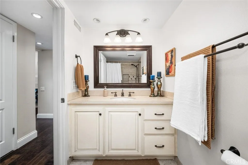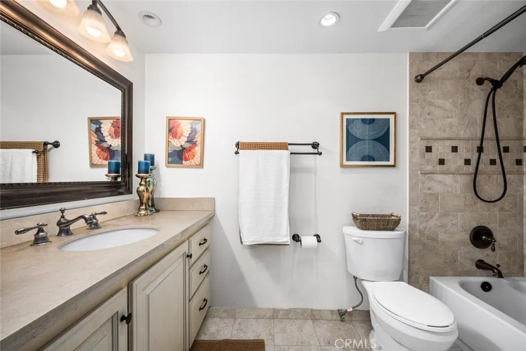 This beautifully maintained 3-bedroom, 3-bathroom tri-level home offers 2,299 sq. ft. of spacious living in a highly desirable end-unit location with an attached two-car garage featuring a newly epoxied floor. Enter through a private brick front patio into a turnkey home filled with natural light, vaulted ceilings, and an open, inviting floor plan. The living room features a cozy fireplace, while the home also includes hardwood flooring, central AC and heat, a wet bar, and abundant storage throughout. The kitchen offers a charming breakfast nook with a coffee bar, and the spacious primary suite includes an en-suite bathroom, walk-in closet, and plenty of comfort. A second en-suite bedroom provides additional flexibility for guests or family. The outdoor patio space is ideal for entertaining, and the home is conveniently located close to the community pool with easy access to major freeways, shopping, and beautiful beaches. Located within the award-winning Los Alamitos School District and within walking distance to Old Ranch Country Club, this exceptional home offers both lifestyle and location.